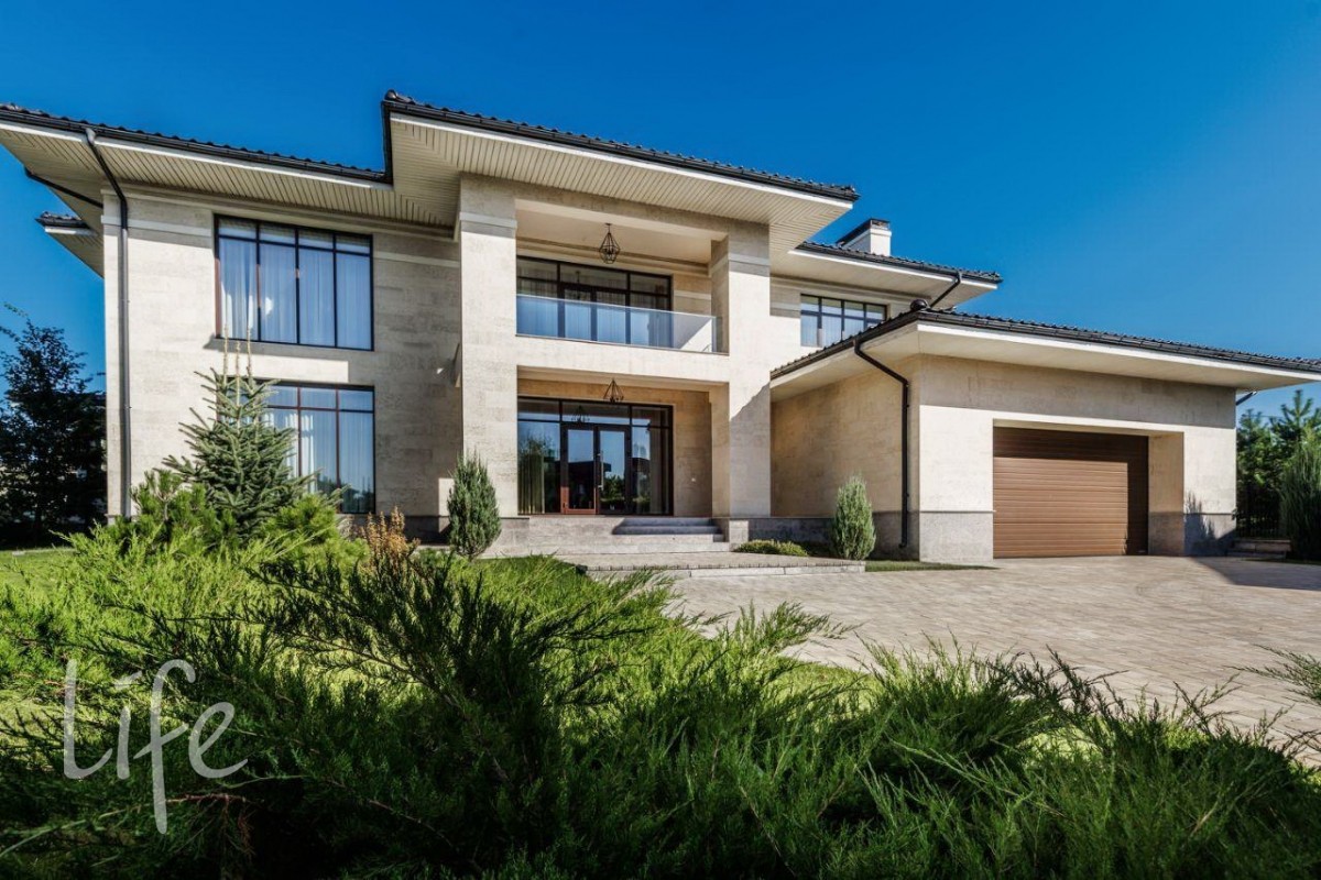 Коттеджный поселок премиум-класса «Ренессанс парк». Новый дом, полностью под ключ, меблирован и оборудован всей необходимой бытовой техникой. В стиле Фрэнка Ллойда Райта, фасад облицован натуральным камнем.