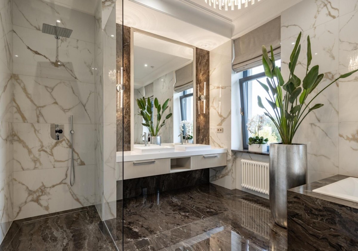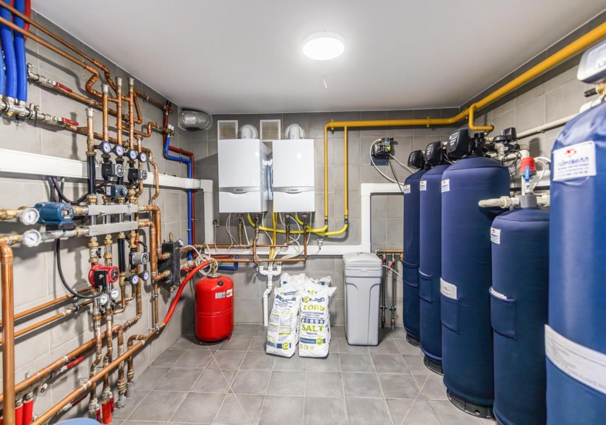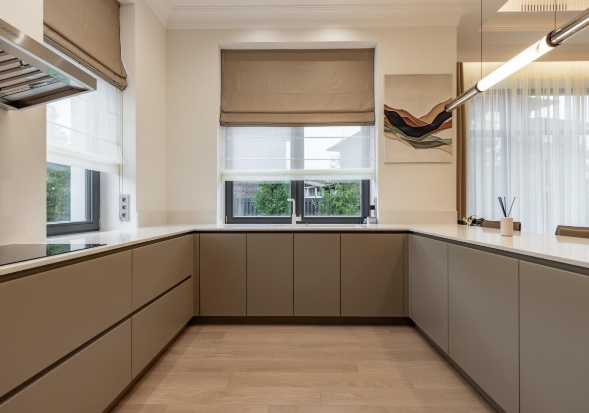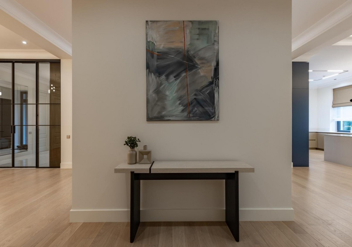 1 этаж: прихожая, гардеробная, постирочная, кладовая, игровая комната, спальня первого этажа, гостевой с/у, немецкая кухня с встроенной техникой Kuppersbusch, с вытяжкой Marte Pro c вентиляцией на крыше, два холодильника Liebherr, столовая зона с выходом на крытую террасу, гостиная с камином, высота потолка 3,8м, пол - массив дуба, теплый пол в зоне плитки.