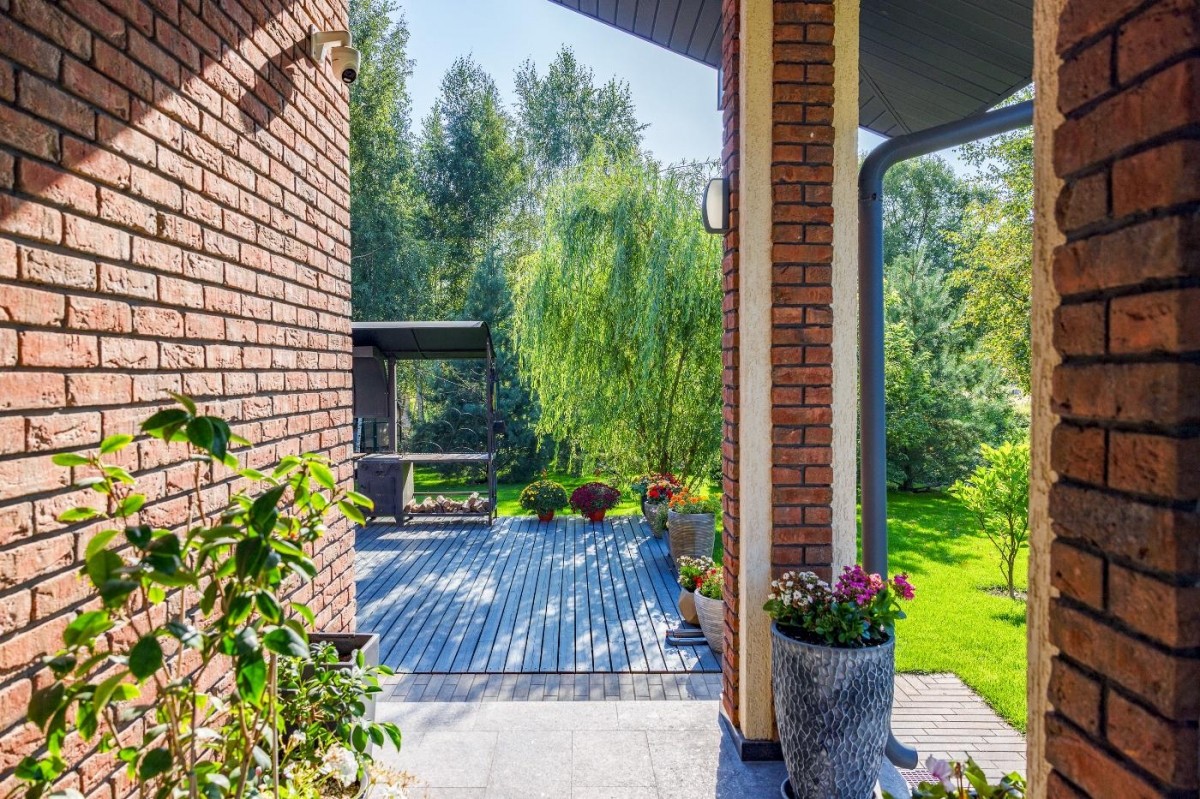 Красивый участок - 30 соток в собственности, 14 соток прибрежная зона с выходом к реке с ландшафтным дизайном с взрослыми хвойными и плодовыми деревьями, розарий, автополив, газовый генератор 14 квт, освещение дома и участка, выложена клинкерная брусчатка, производство Германия.