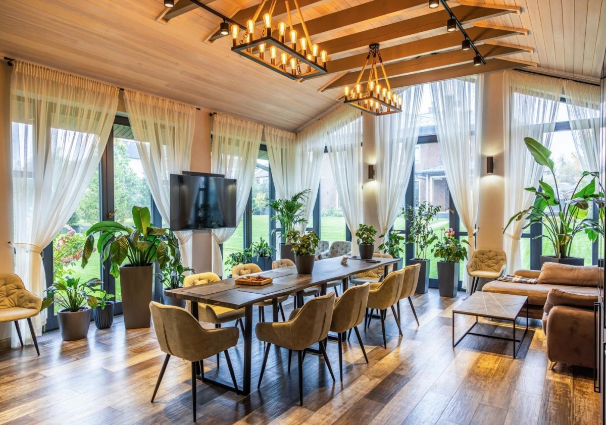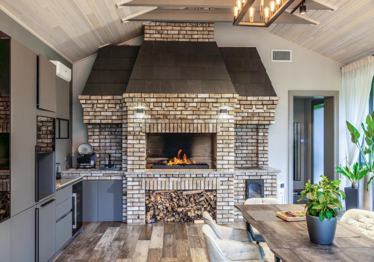 Зона Барбекю 105кв. м – шашлычная зона, зона отдыха, кухня, с/у, кондиционирование, панорамное остекление с механизмом полного открывания.