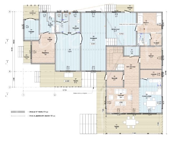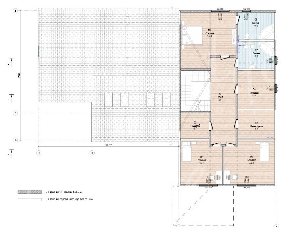 Зонирование дома распределено на 2 блока с собственными отдельными входными группами, отсутствует сквозной проход.