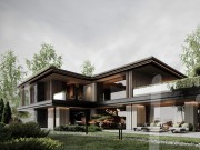 2 этаж: холл, спальня со своим с/у и гардеробной, спальня со своим с/у, гардеробной и 2 балконами, мастер-спальня с гардеробной, ванной комнатой и большой террасой с видом на лес, квартира для персонала с отдельным входом.