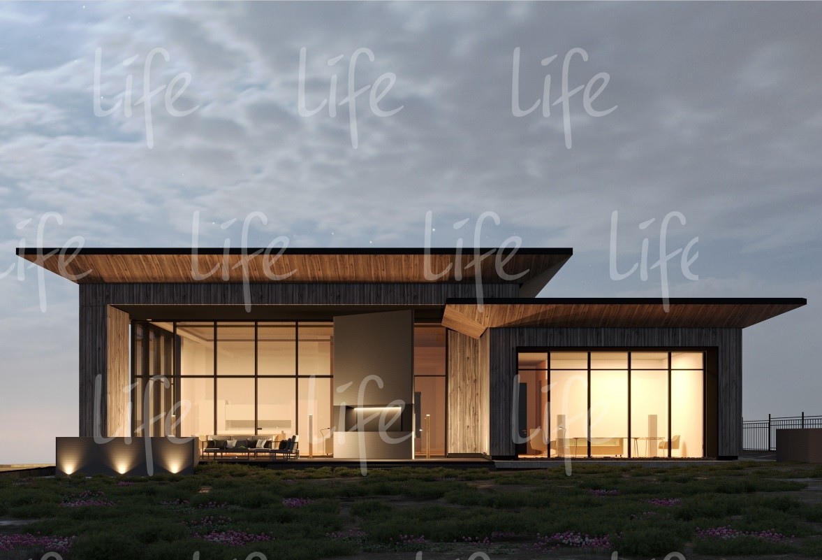 Вам повезло, не останавливайтесь... Новый, современный, одноэтажный дом авторской архитектуры в стиле хай-тек, в духе минимализма. Панорамное остекление, плоская кровля.