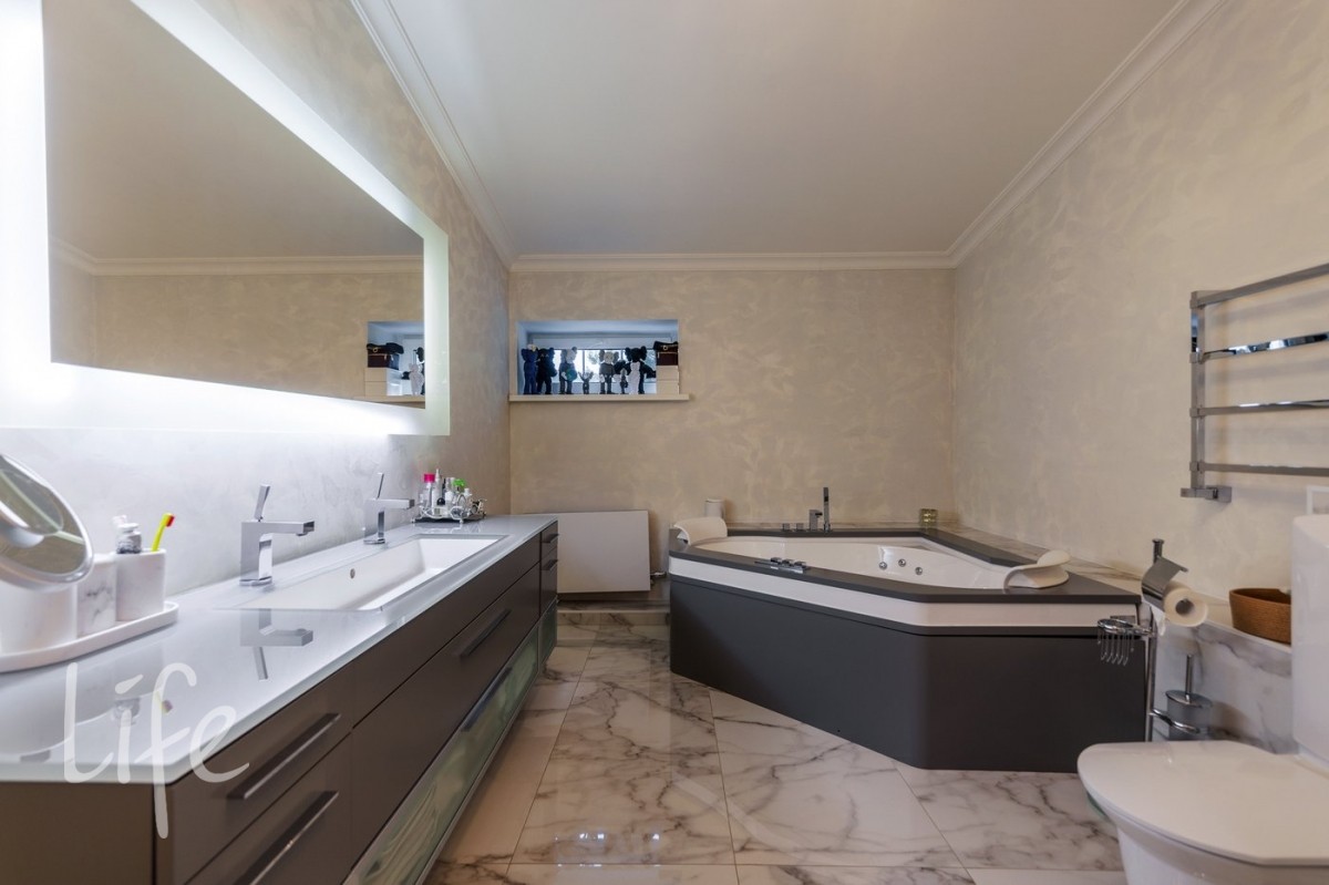 Дом в идеальном состоянии после ремонта некоторых помещений. А также стоит отметить наличие собственной охраны на несколько домов, также большое преимущество - возможность выезда на Новую ригу двумя маршрутами, а также есть возможность выезда через Рублево-Успенское шоссе.