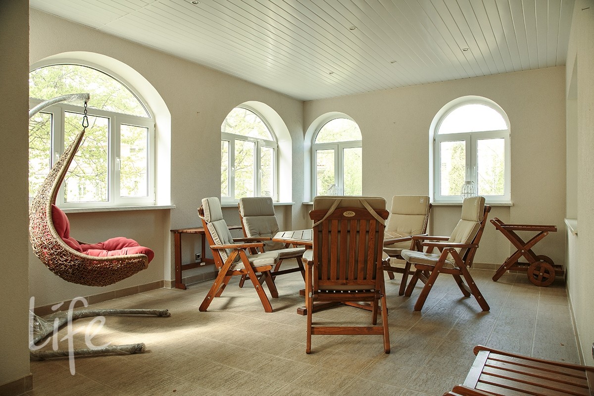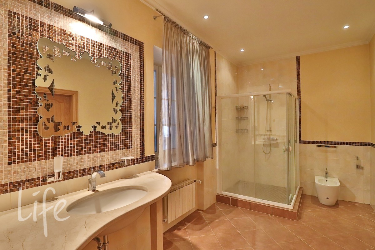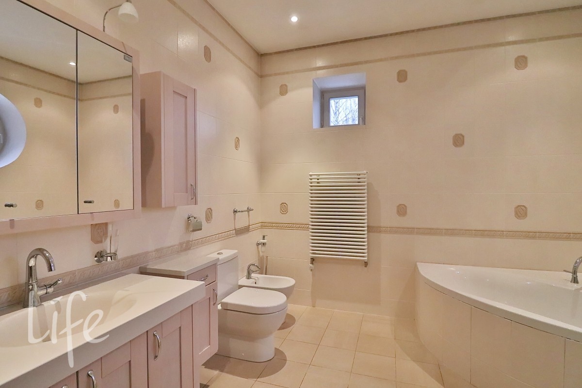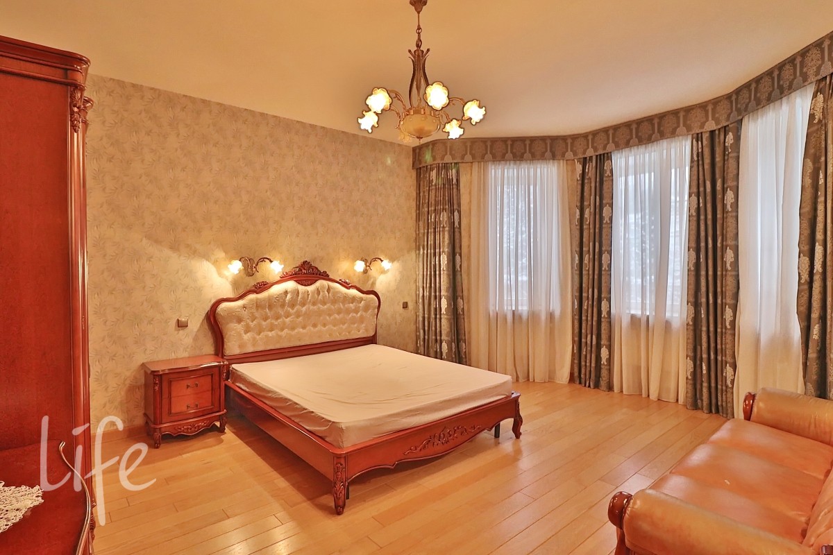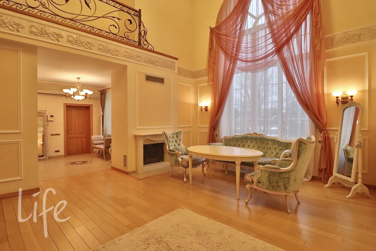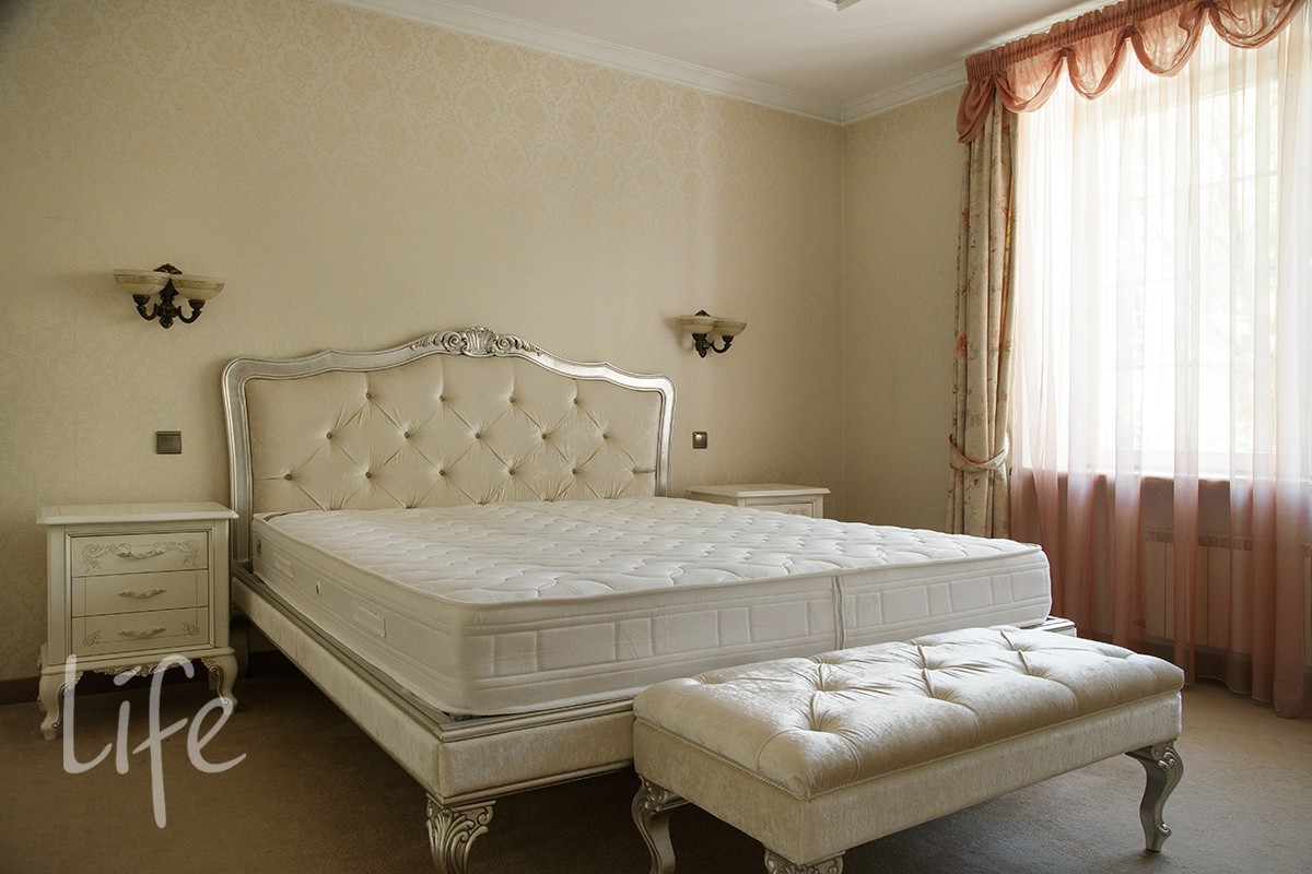 Интерьер выполнен в классическом стиле в светлых пастельных тонах. Вся мебель — итальянская, а бытовая техника — от премиальных брендов. Планировка дома очень удобная, а все коммуникации проведены централизованно. Установлены кондиционер и система встроенного пылесоса.