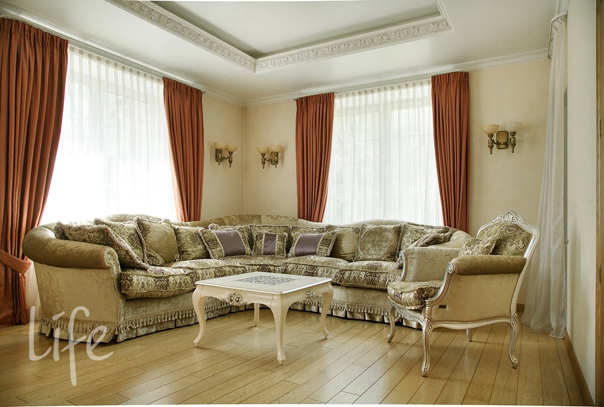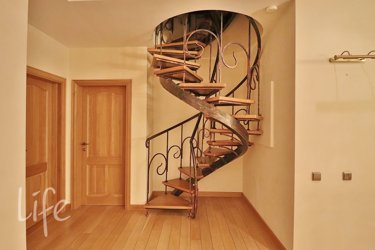 Для отделки интерьера использовались только высококачественные европейские материалы. Полы выполнены из массива благородных пород дерева, а стены покрыты венецианской декоративной штукатуркой. Двери из массива дуба, изготовленные на заказ в Италии, украшены автографом мастера.
