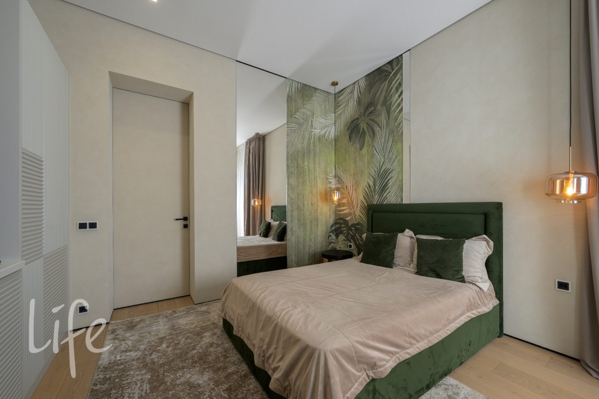Конструктив - полнотелый кирпич, панорамные окна, авторская отделка, паровой камин, премиальная сантехника и бытовая техника, теплые полы, видеонаблюдение. Фишка - собственная калитка в лес.