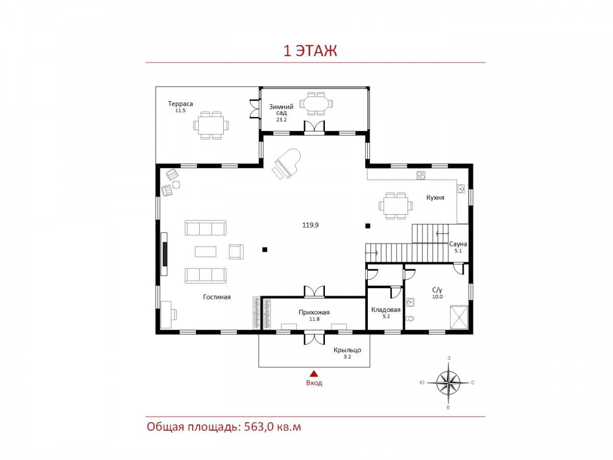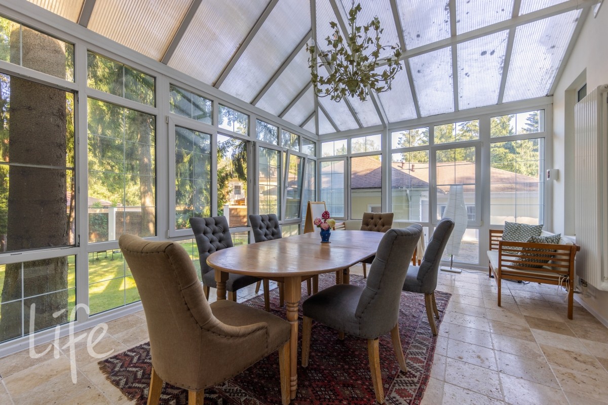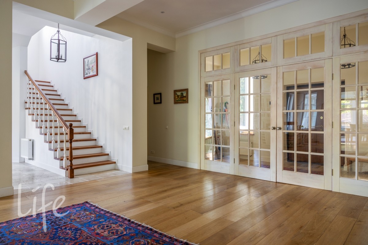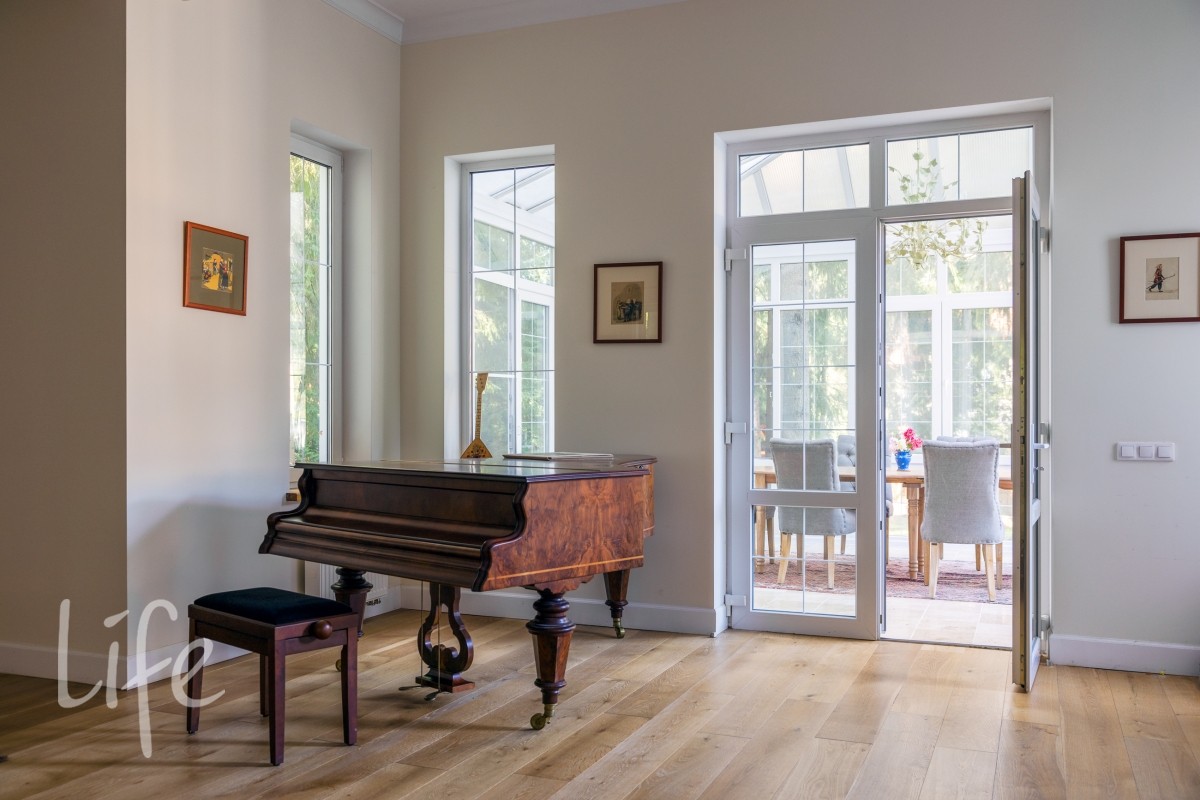 Элегантный дом с просторными помещениями и высокими потолками имеет очень удобную планировку. Благодаря большим окнам в интерьере всегда много естественного света.