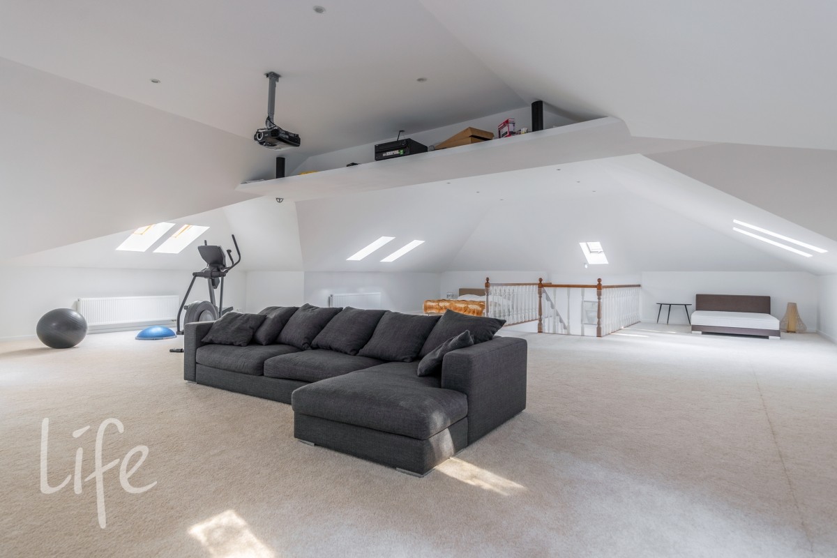 Мансарда: кинотеатр c проектором и экраном, игровая комната, фитнес зону c эллиптическим тренажером NordicTrack Commercial 14.0
