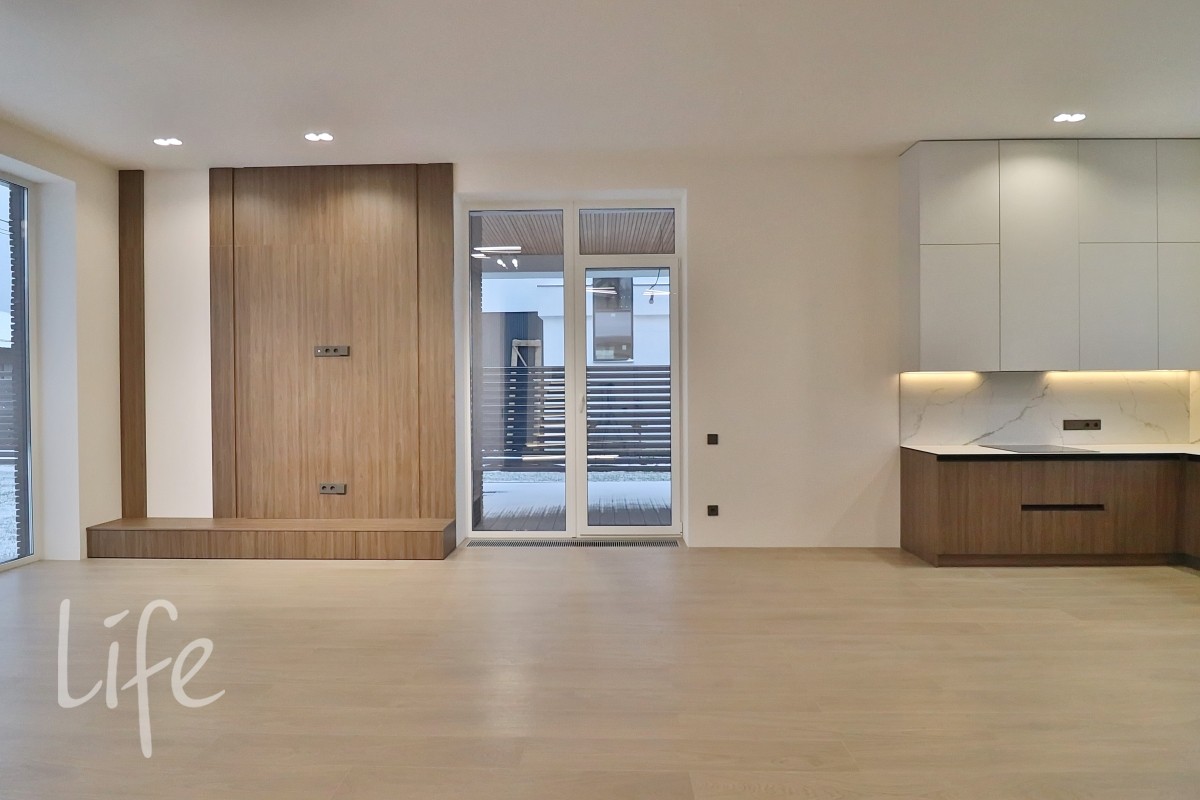 Охраняемый поселок. Новый дом в стиле хай-тек, под ключ, установлен кухонный гарнитур.