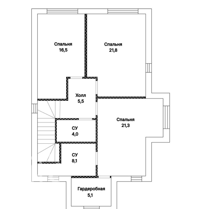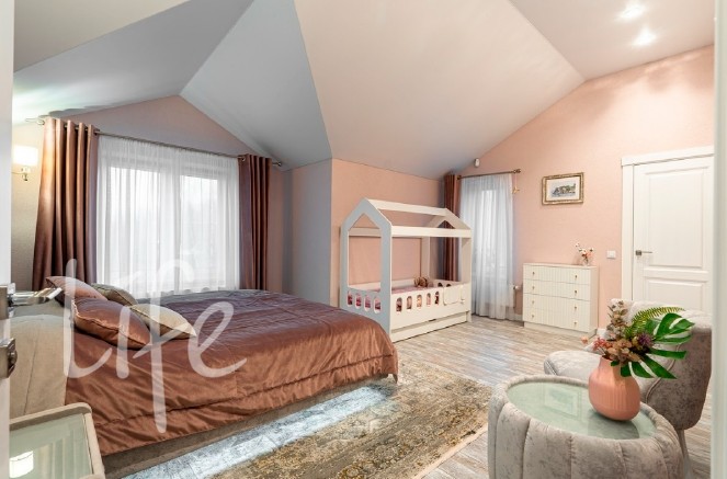 2 этаж: мастер-спальня с гардеробной и ванной, спальня с гардеробной, детская, су с душевой кабиной.