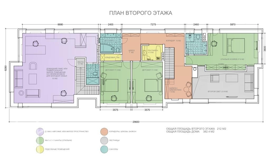 2 этаж: мастер спальня, 2 спальни (детские), постирочная, с/у, гардеробная, с/у.