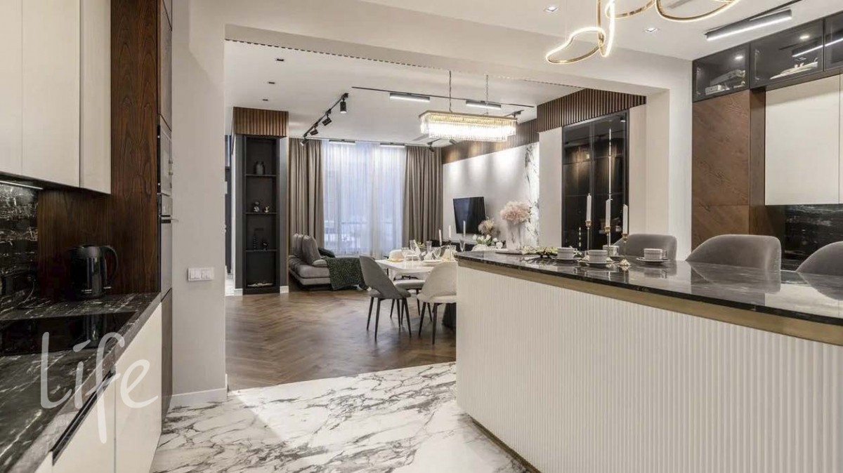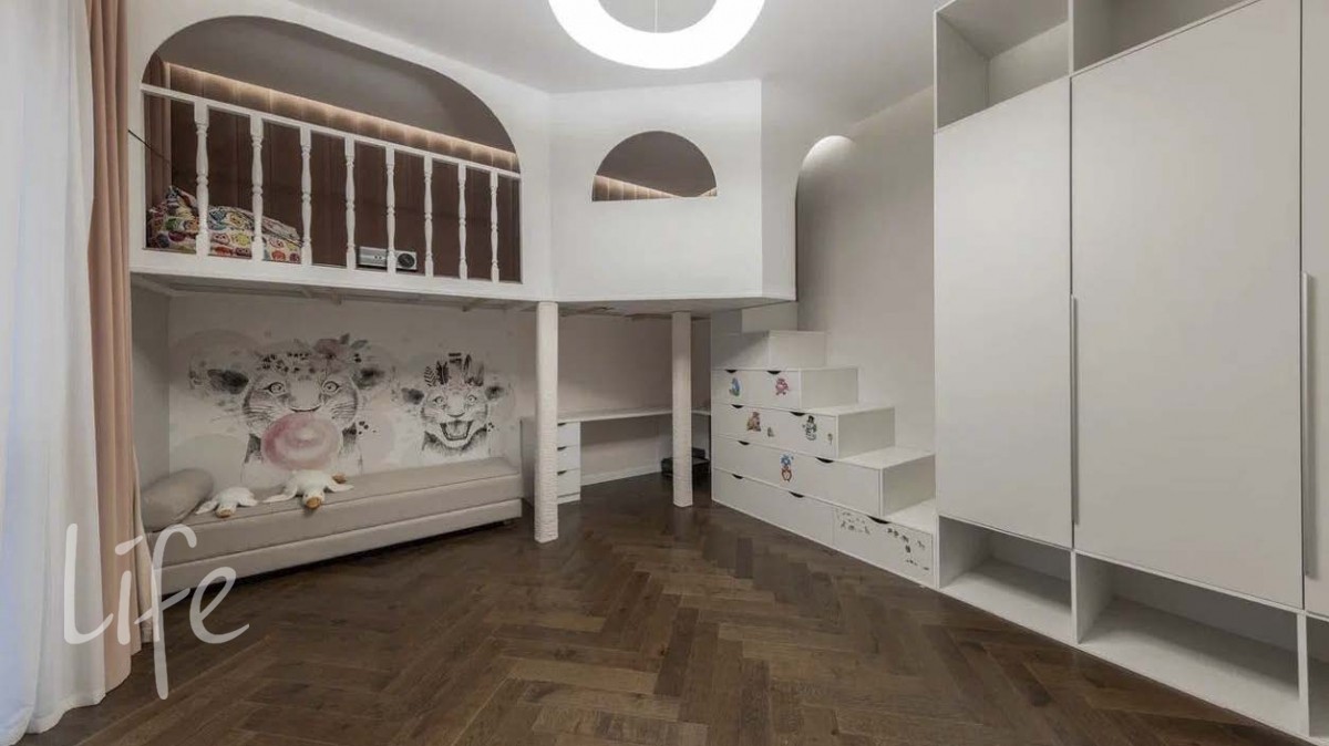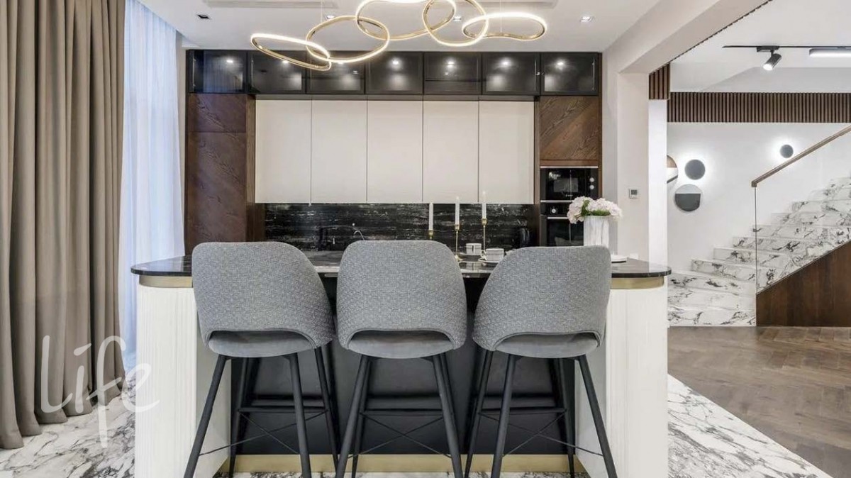 Таунхаус спроектирован с особым вниманием к удобству для жизни большой семьи. Просторная кухня-гостиная с островом, несколько полноценных спален, мастер-блок с собственной гардеробной и санузлом, игровые и детские комнаты, постирочная, сауна и выход на эксплуатируемую крышу — каждый уровень продуман так, чтобы обеспечить максимум комфорта и приватности.