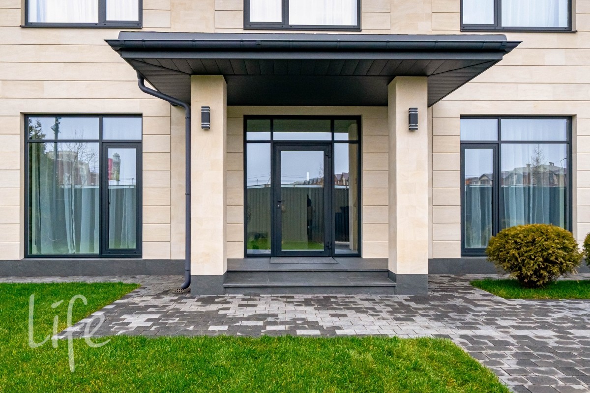 алюминиевые окна, уложена премиальная брусчатка Steingot. Забороснащён электроприводом.