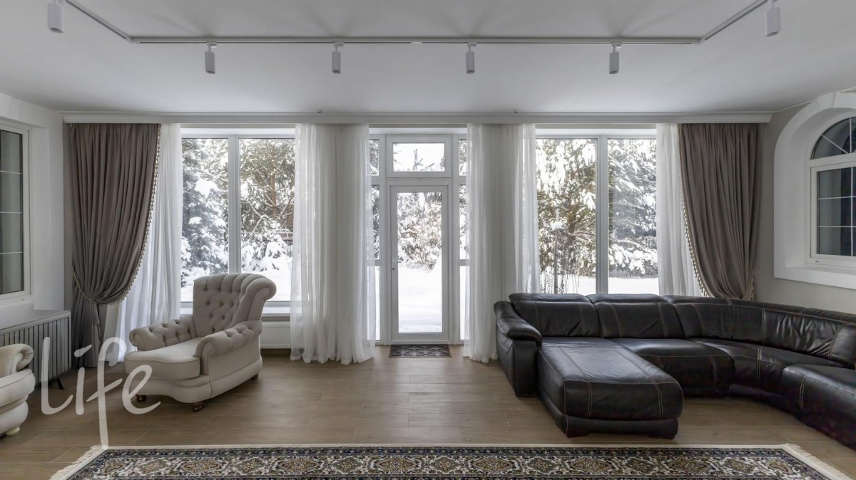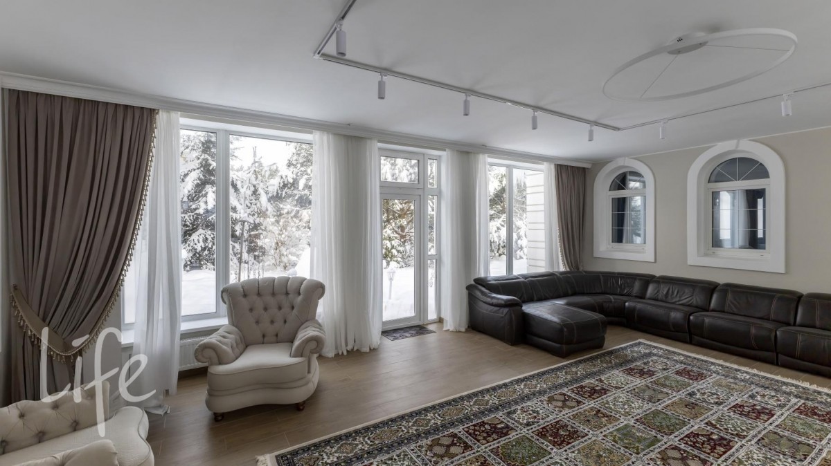В зоне отдыха бассейн, сауна, бильярдная с русским бильярдом 12 футов, теннисная и массажная комната. В отделке использованы дорогие материалы. На полу паркетная доска. Установлена итальянская кухня и сантехника, теплые полы, кондиционеры, видеонаблюдение. В каждой комнате система увлажнения. Дом полностью меблирован и готов к проживанию, заведен мощный интернет и спутниковое ТВ.