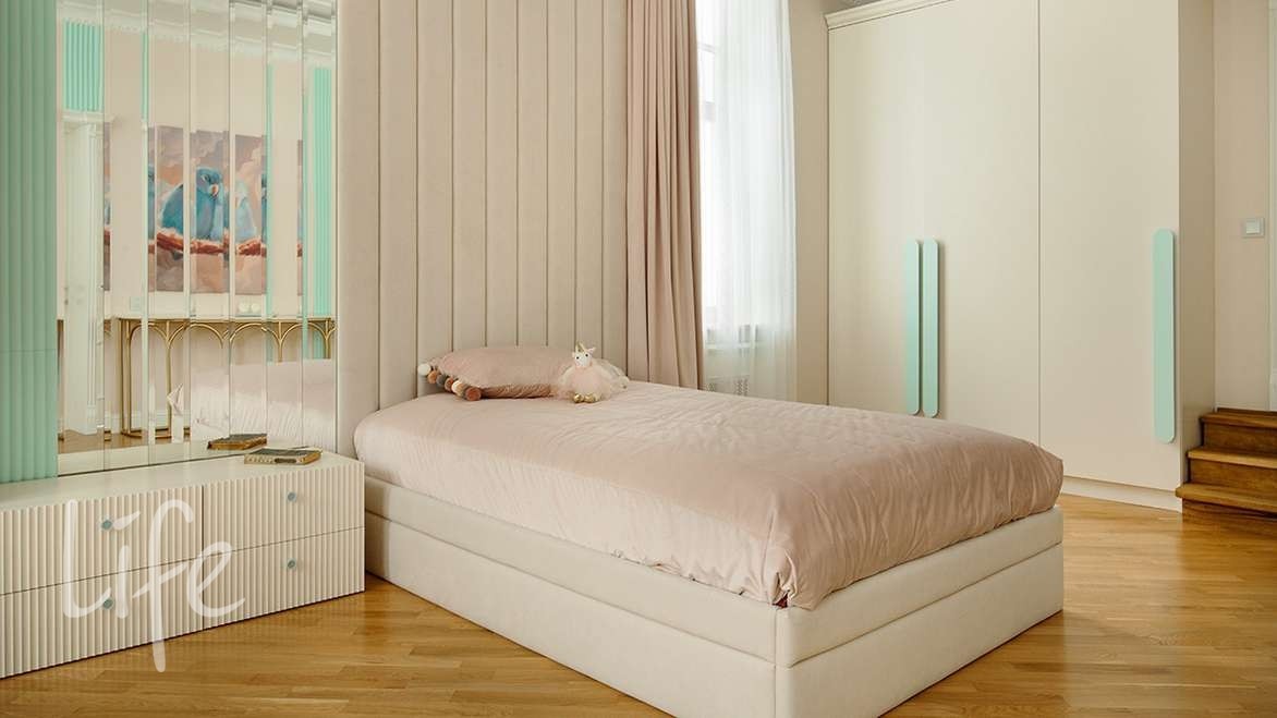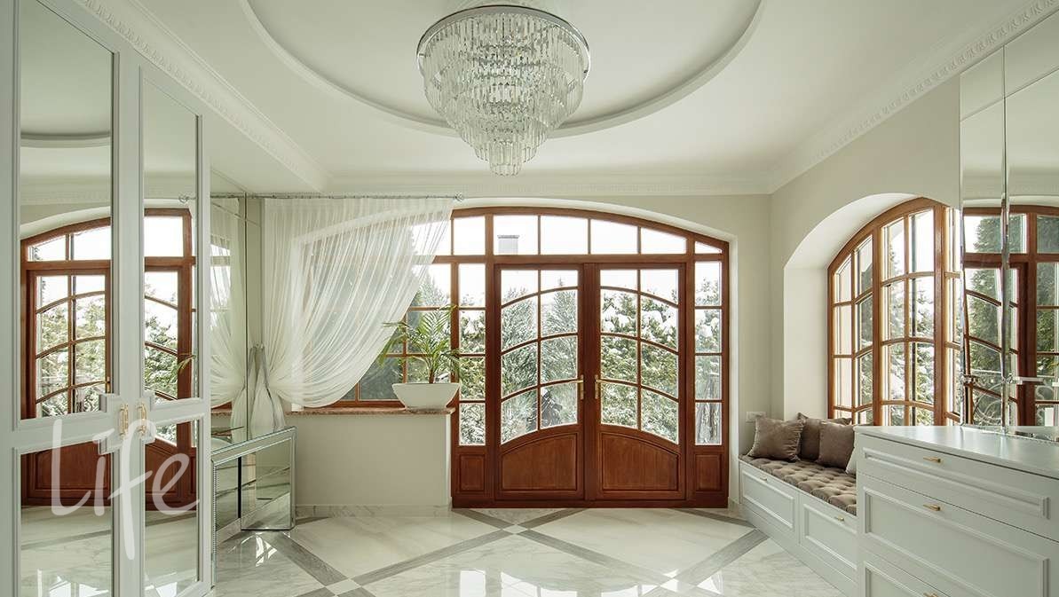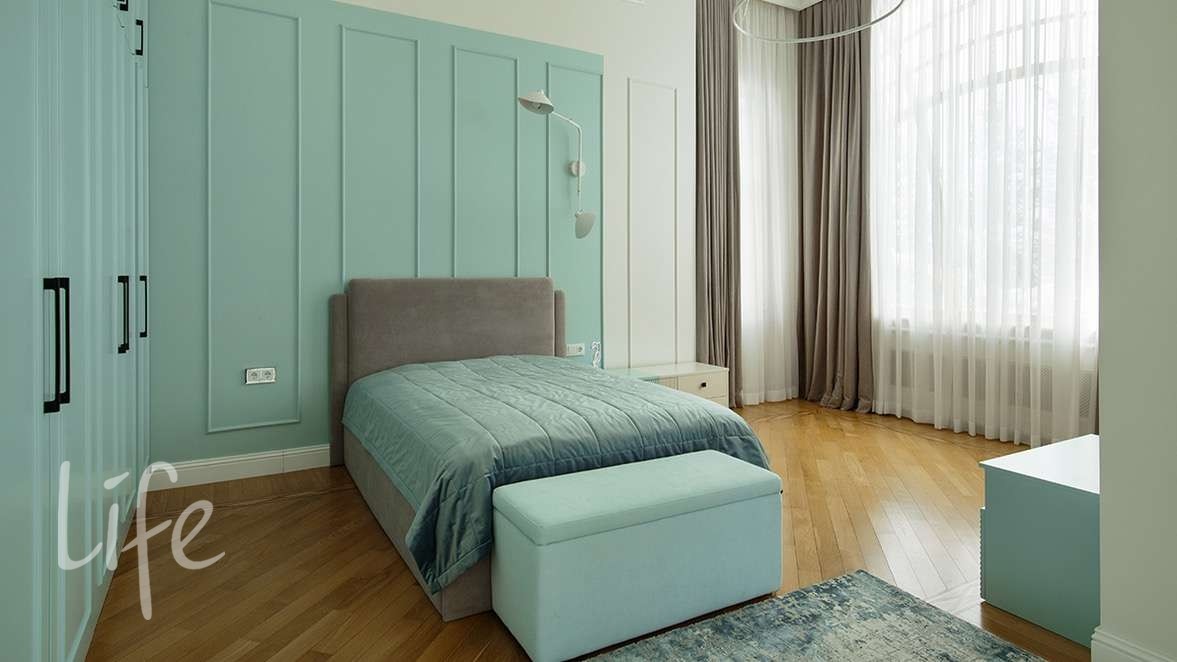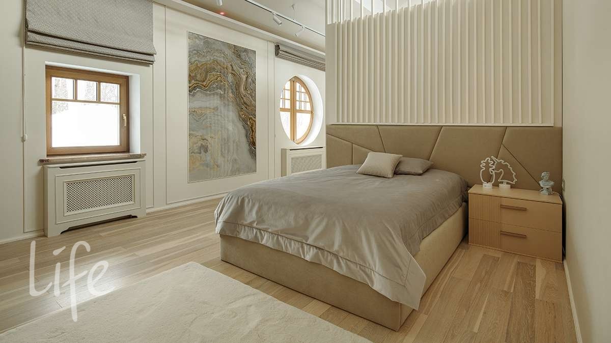 2 полуэтаж: мастер спальня с малой гостиной, выходом на балкон, гардеробной и ванной.