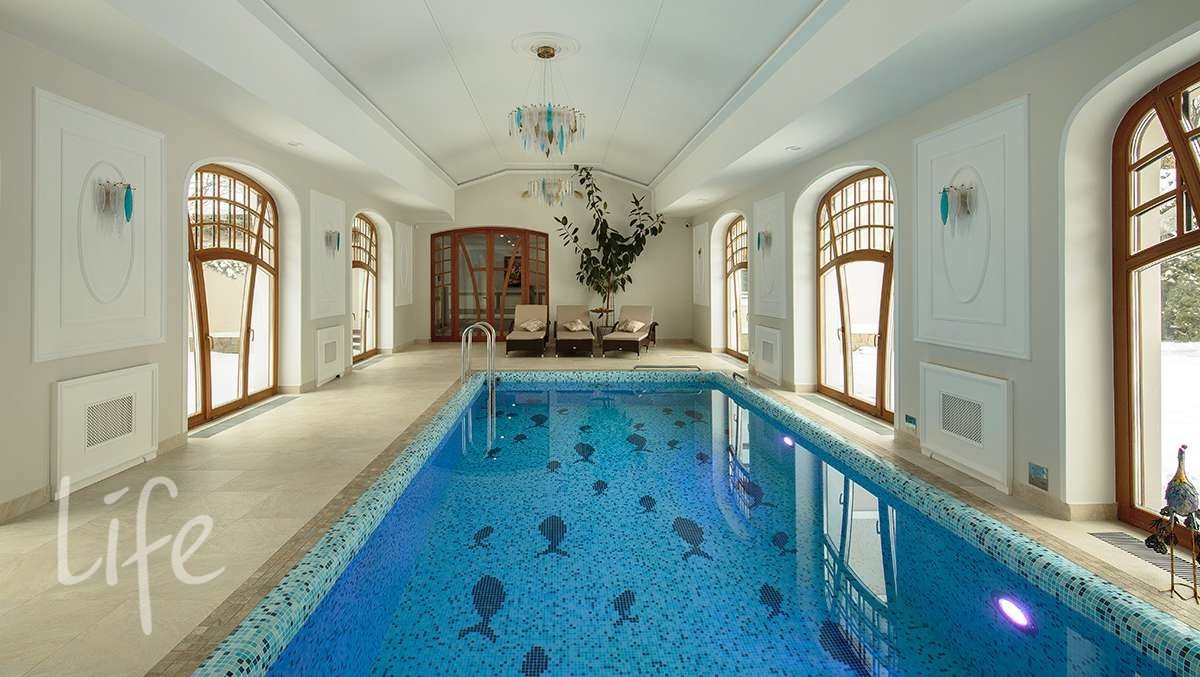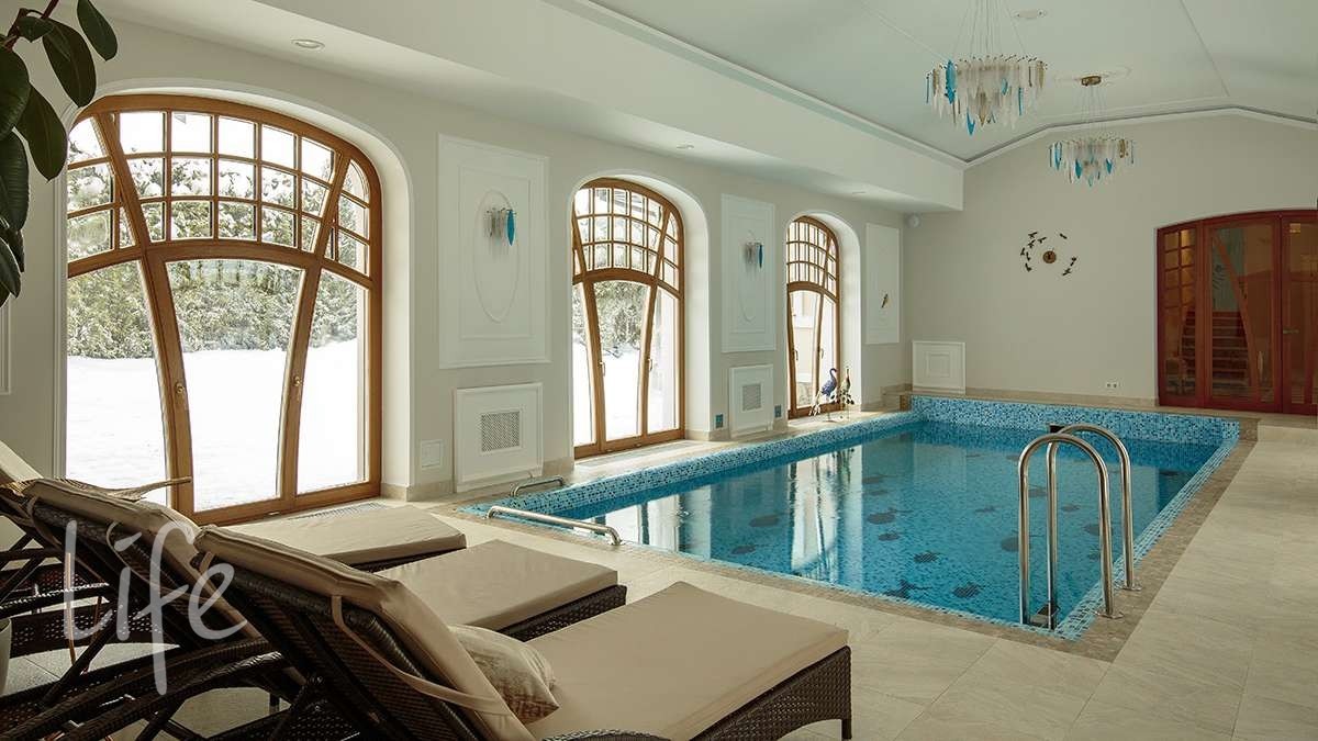 1этаж: холл, кабинет, гостиная со вторым светом и камином, кухня-столовая с выходом на террасу, с/у, СПА-зона с бассейном, имеющим выход на открытую террасу.