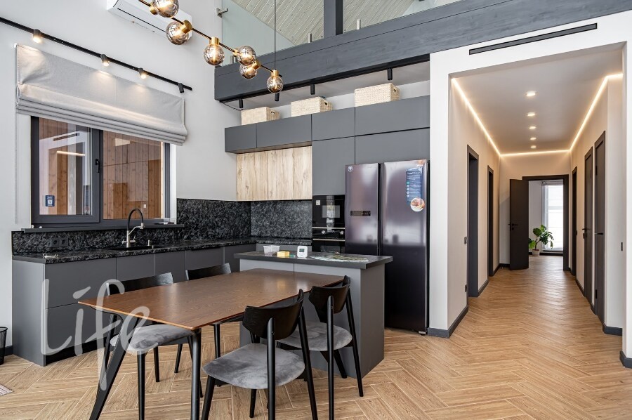 Оснащение: тёплые полы, вентиляция с рекуперацией, кондиционирование, качественная инженерия, усиленная шумоизоляция стен и межэтажного перекрытия.