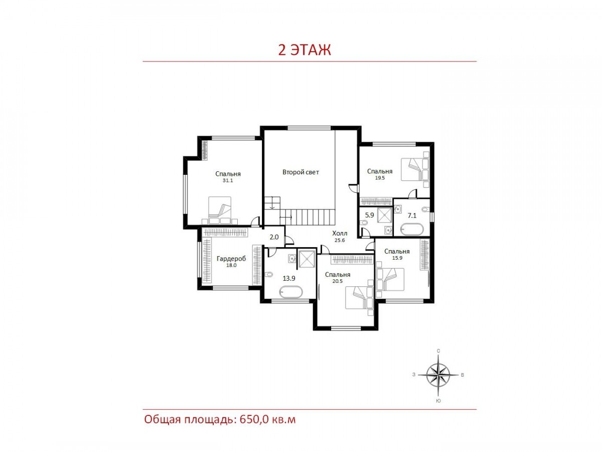 2 этаж: мастер блок: спальня с видом на лес, с/у, гардеробная, спальня с с/у, 2 спальни, с/у.