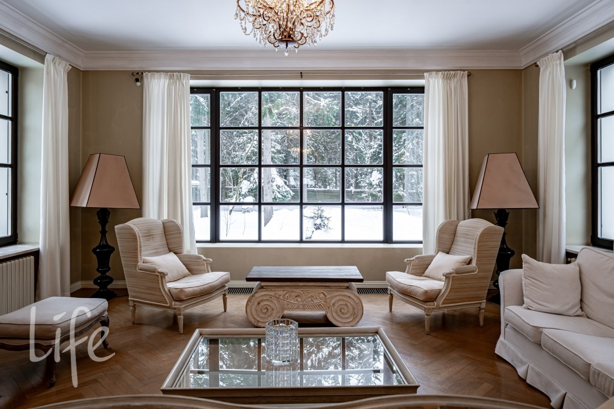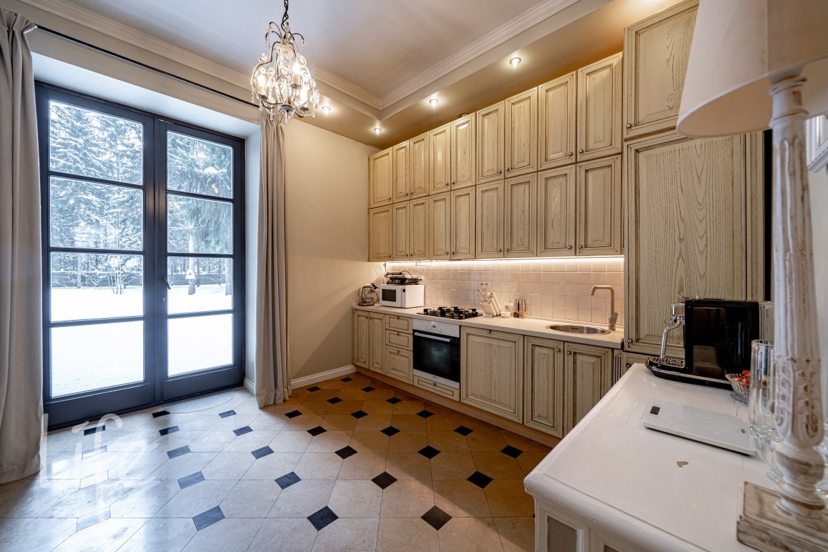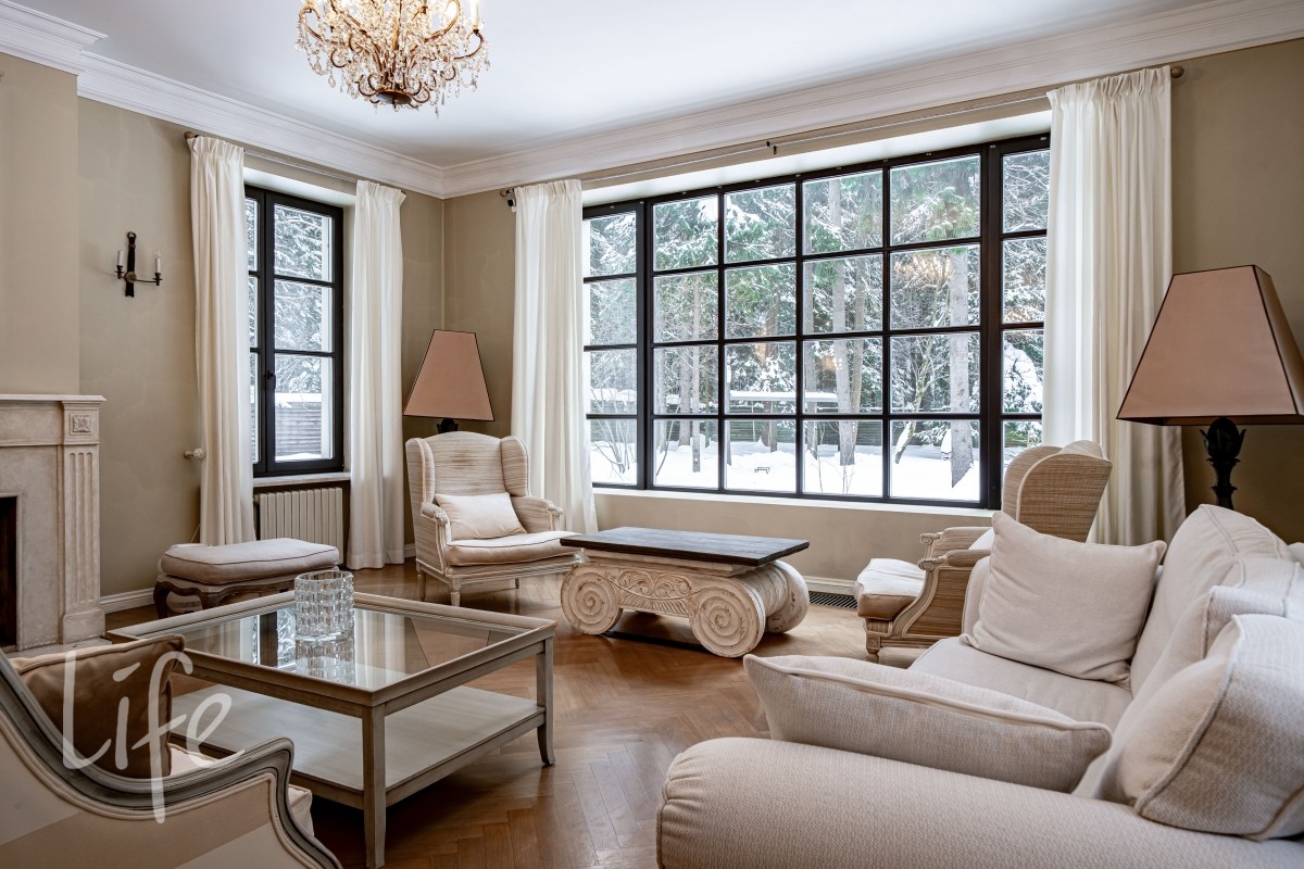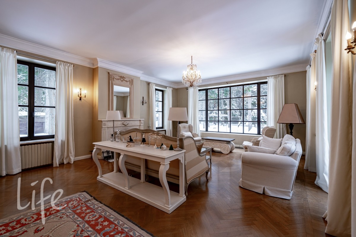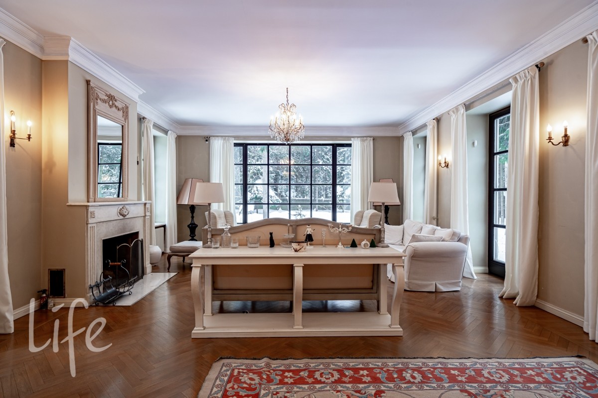 1 этаж: светлая гостиная с камином и выходом на просторную террасу (зона барбекю). Кухня, холл, гардеробная, гостевой с/у. Кабинет, постирочная, кладовая.Две спальни (каждая со своим санузлом).