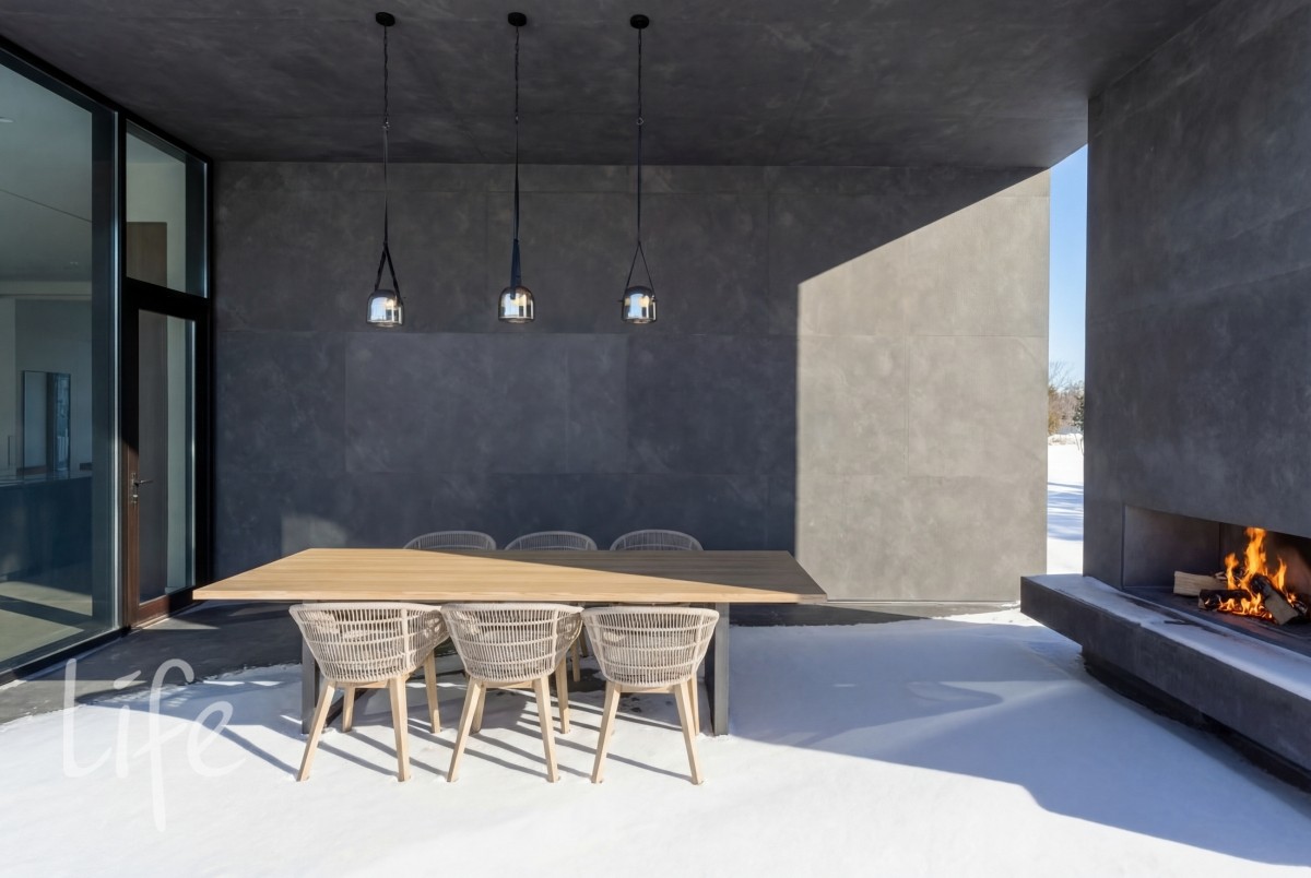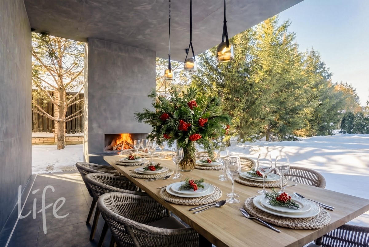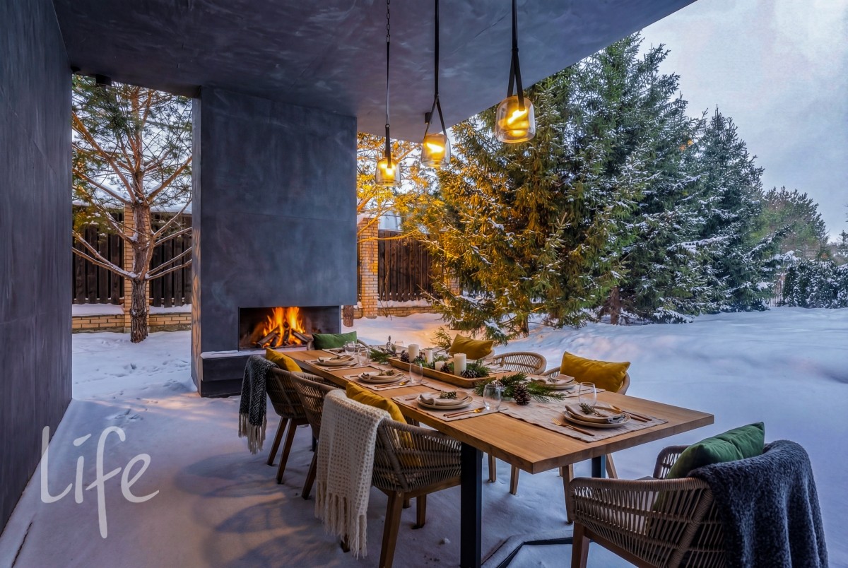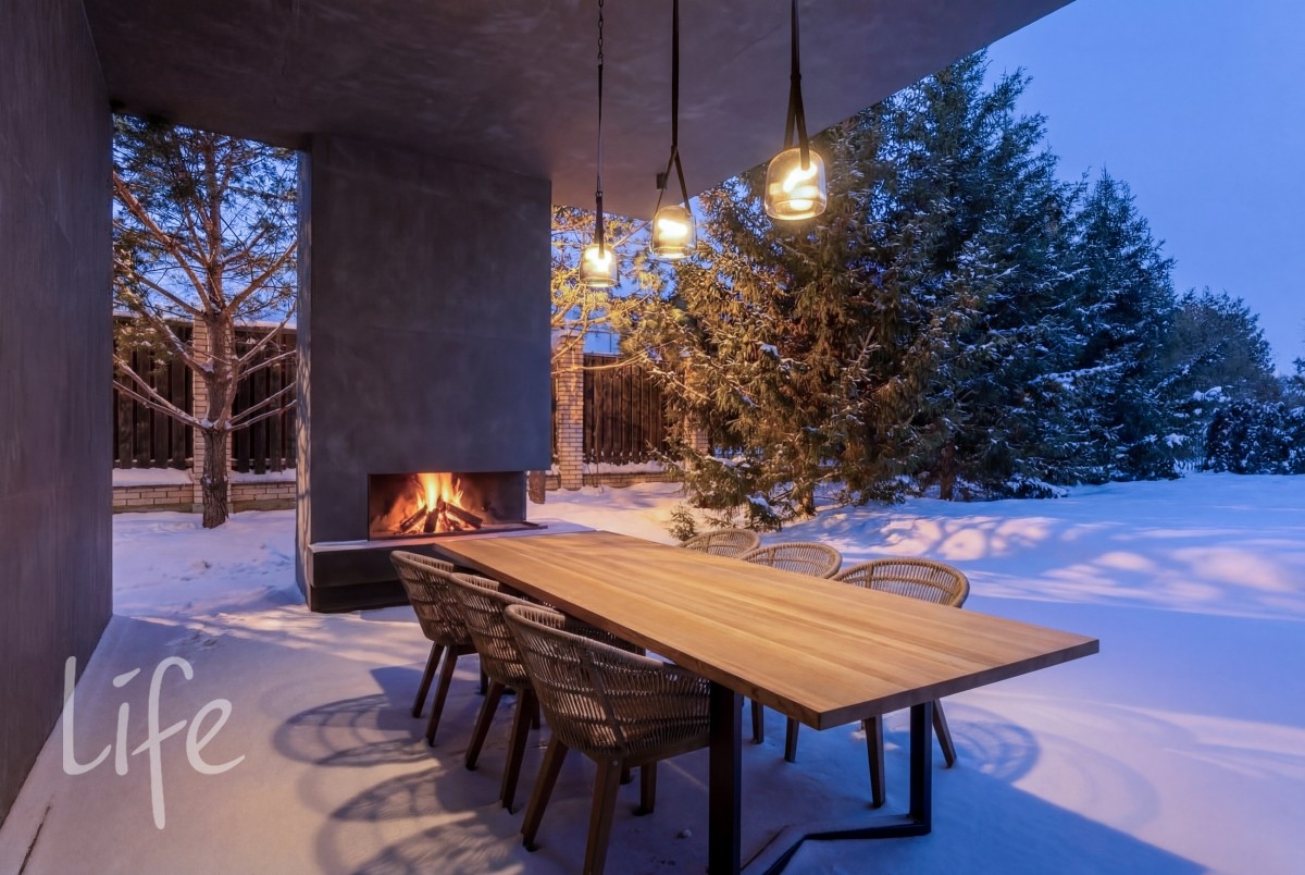 Уникальная зона отдыха: Просторная терраса оборудована уличным камином и зоной барбекю — идеальное место для приемов в любое время года.