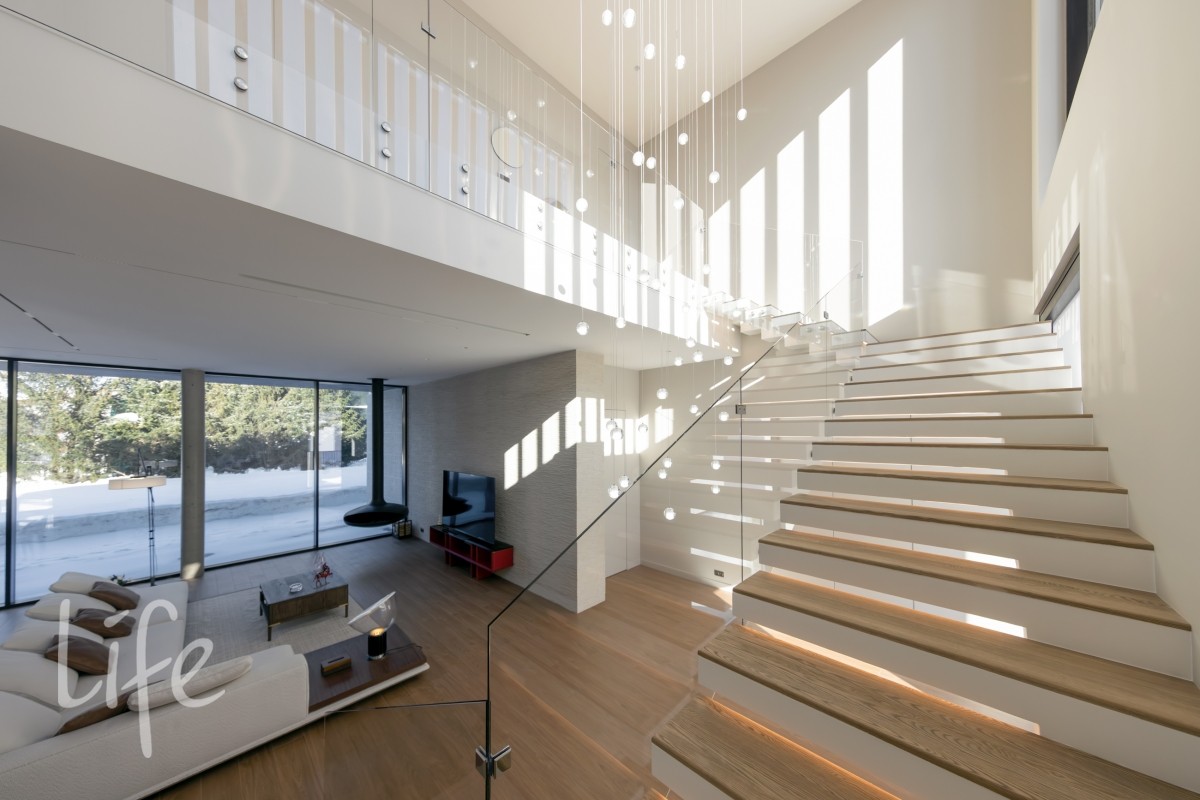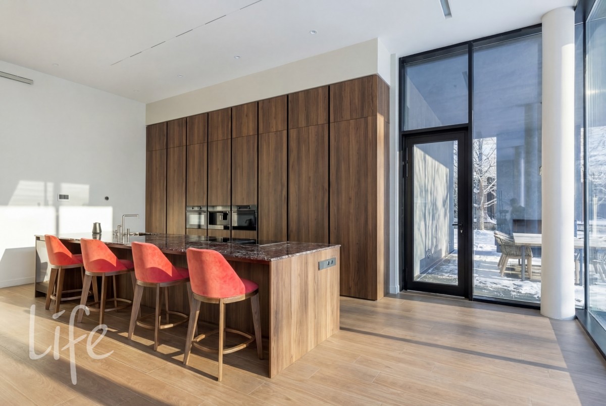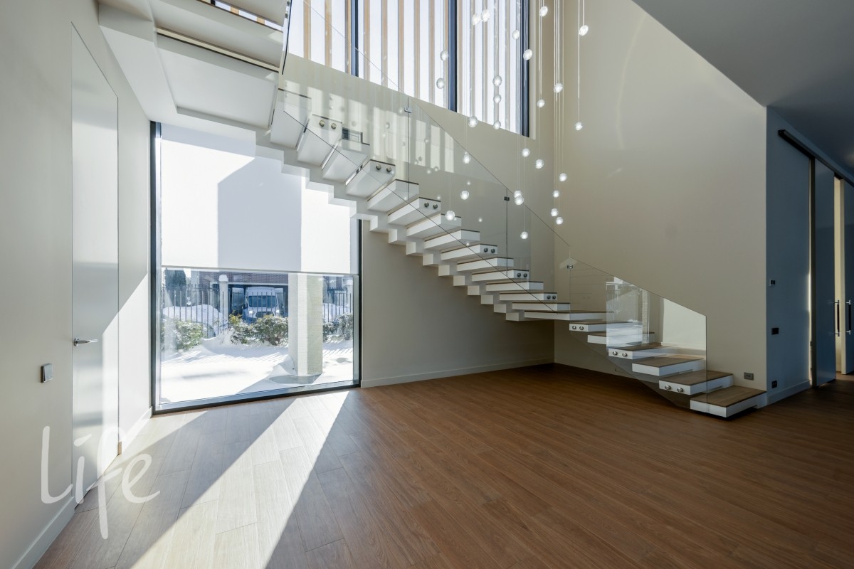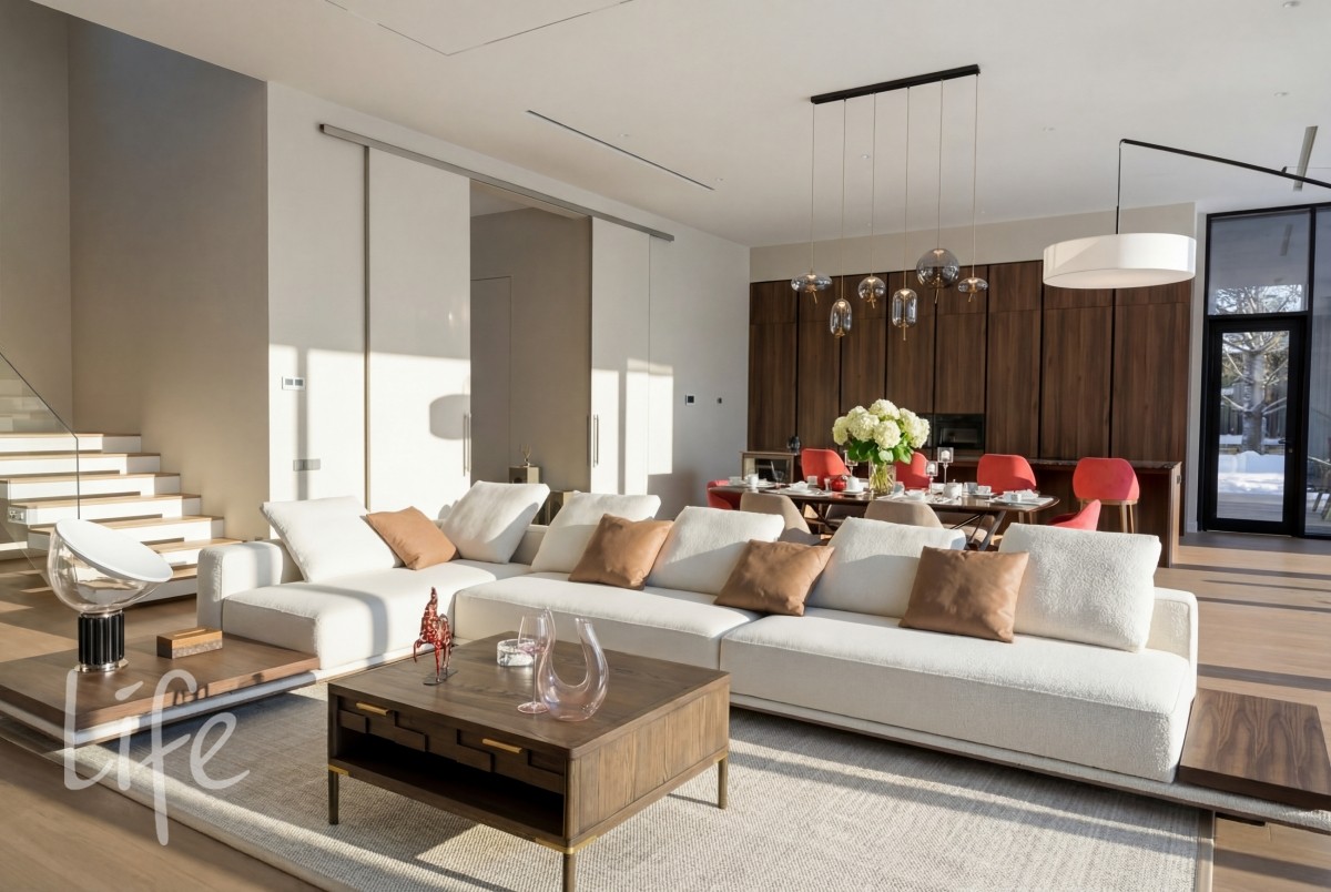 Масштаб и свет: Высота потолков 3,7 м на первом этаже и 3,5 м на втором создают исключительное ощущение объема.