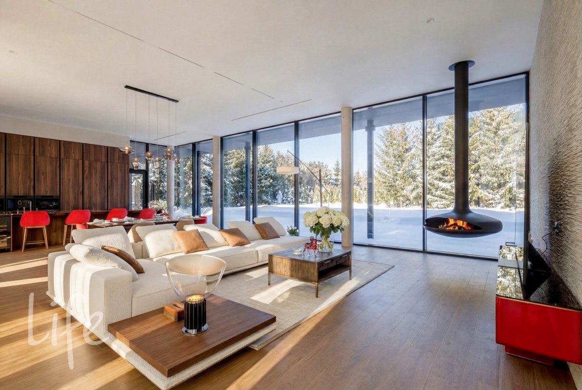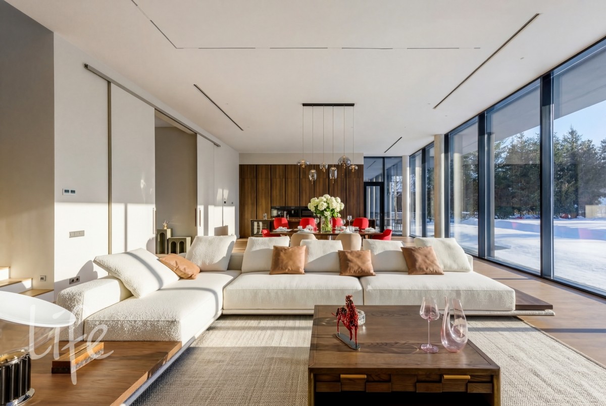 Предлагается к продаже современная резиденция площадью, созданная для ценителей пространства и приватности. Авторский проект с панорамным остеклением и продуманным сценарием жизни.