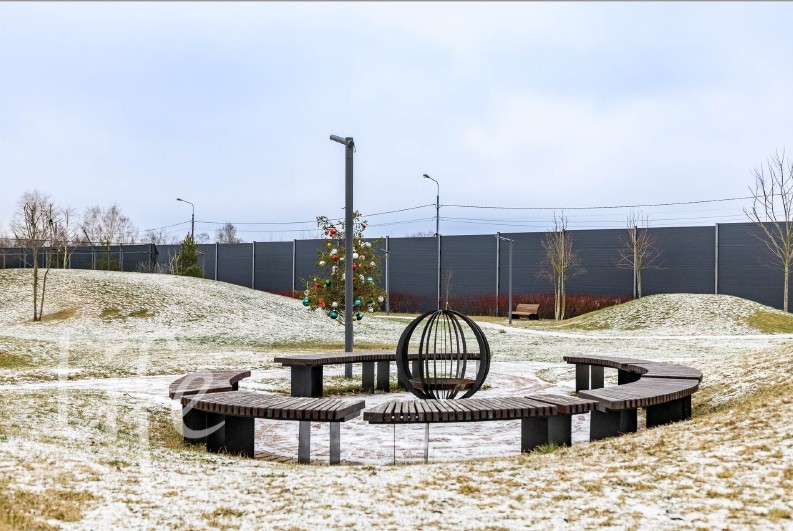 Территория поселка охраняется, имеются 2 КПП, гостевые парковки, ландшафтное озеленение общих территорий, теннисный корт, баскетбольная площадка, 6 детских площадок, зоны для прогулок и отдыха.