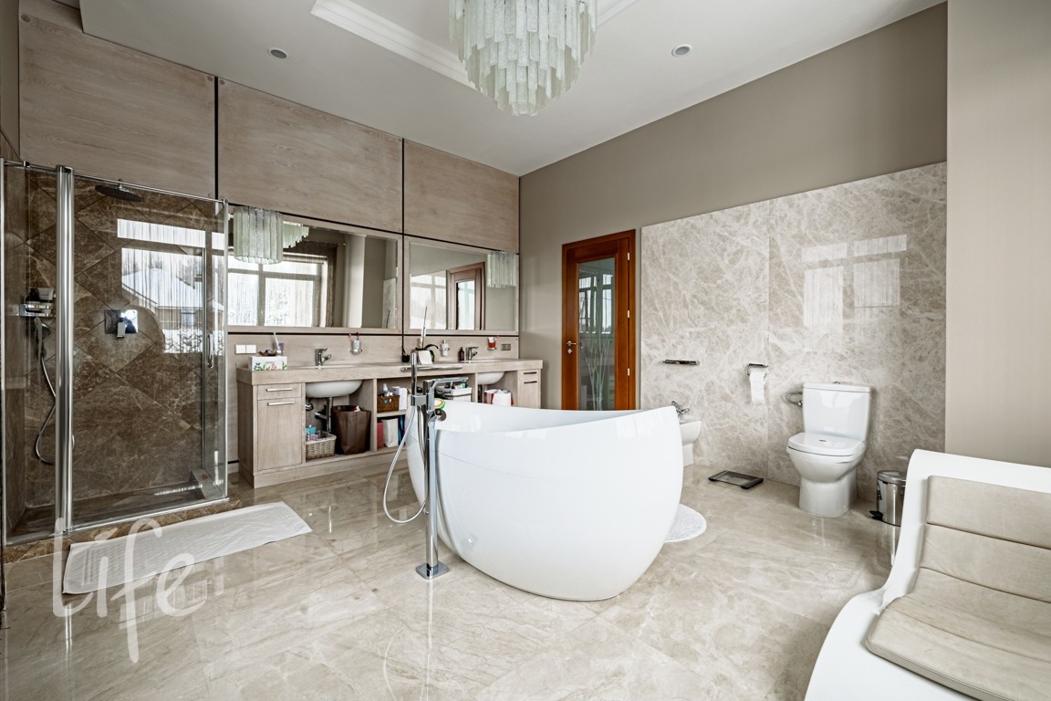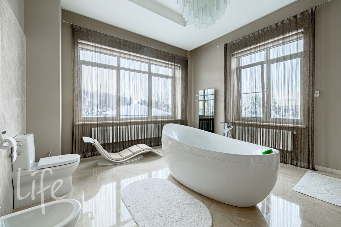 Отделка в лаконичном современном стиле выполнена из качественных натуральных материалов. Дом полностью готов к проживанию, меблирован, оборудован всей необходимой бытовой техникой.