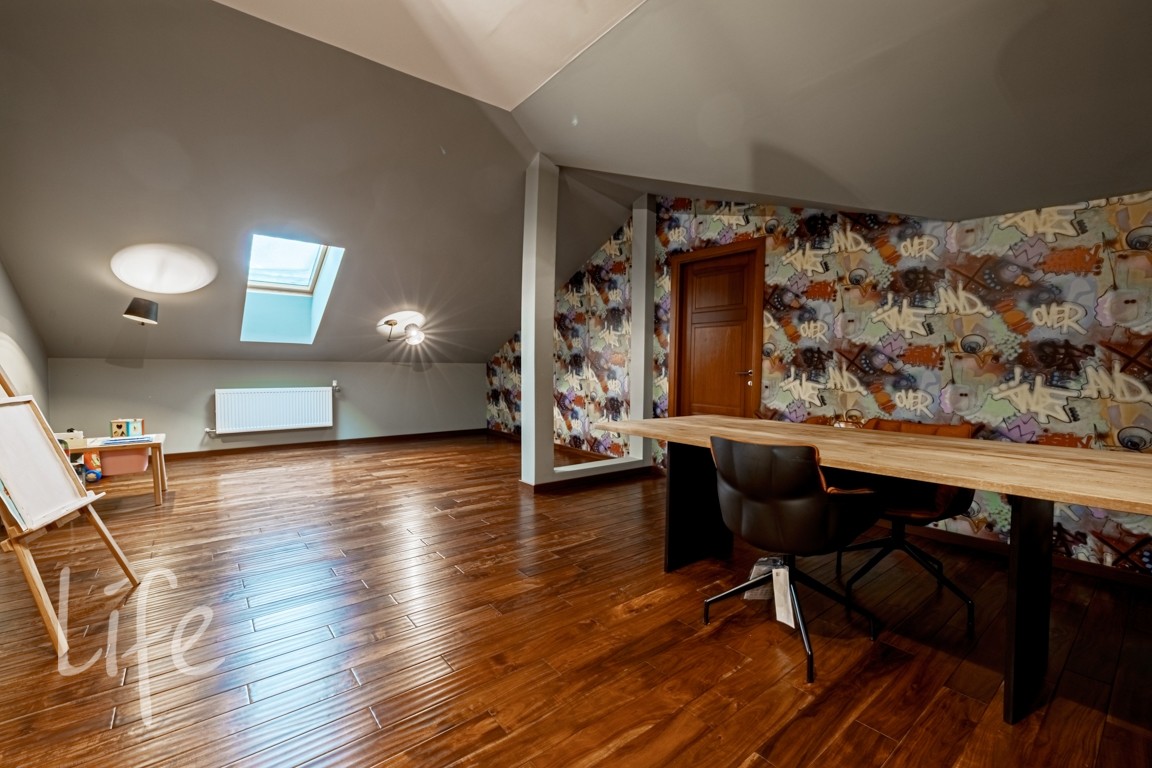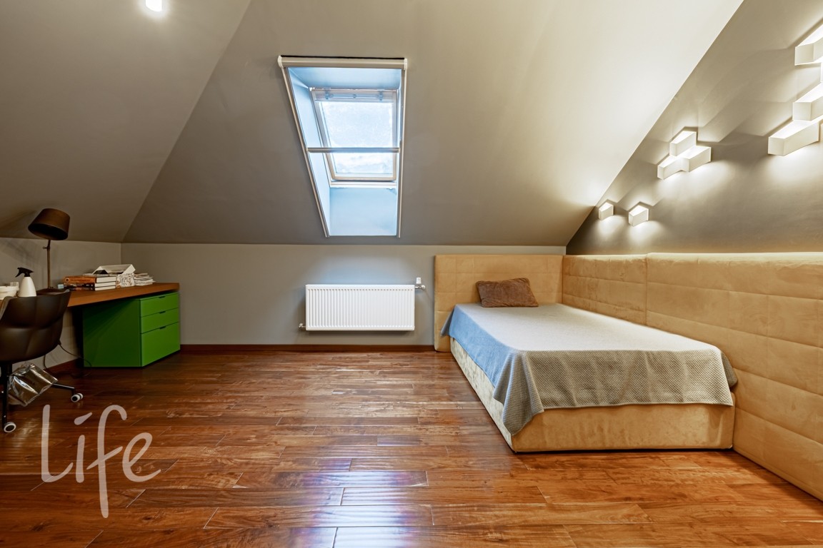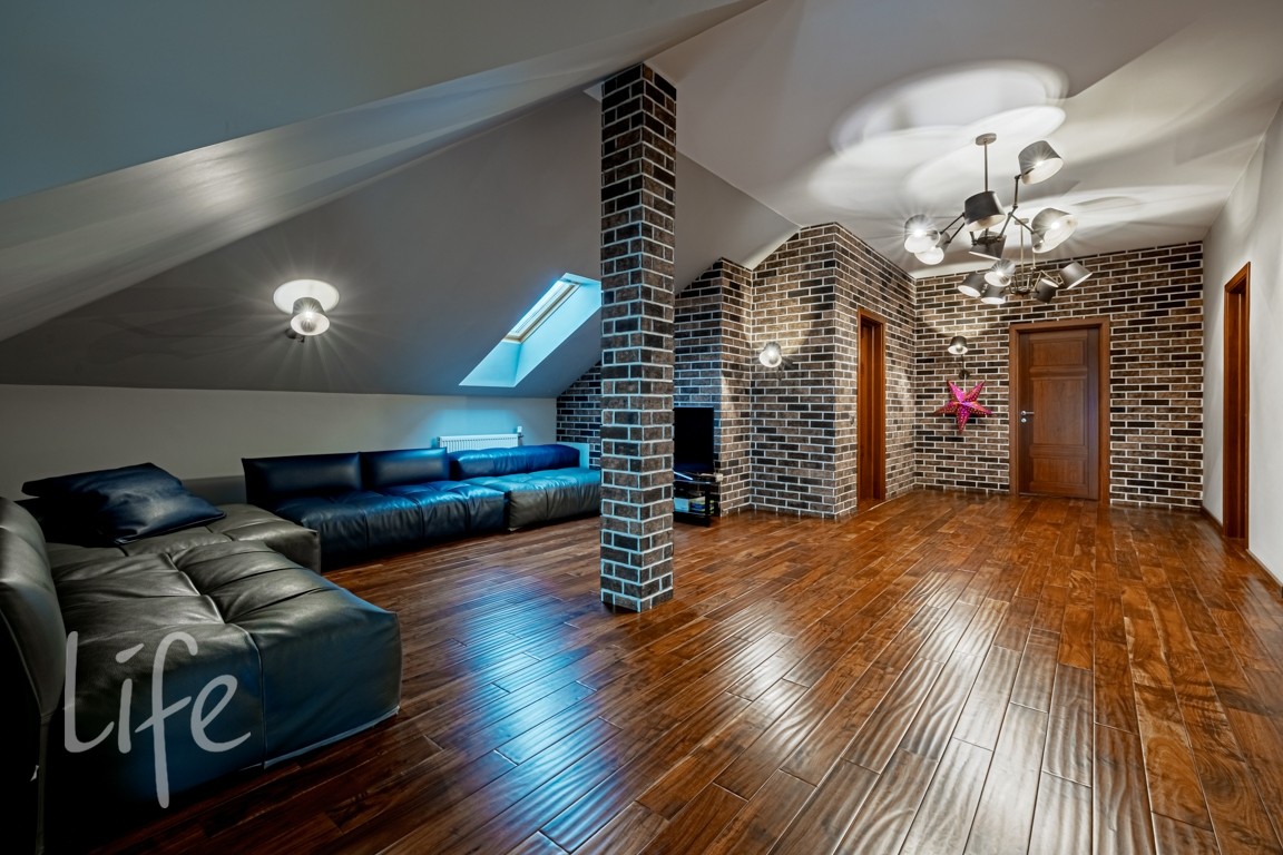 Мансарда: тв-зона отдыха, 2 спальни, 2 с/у, мастерская.
