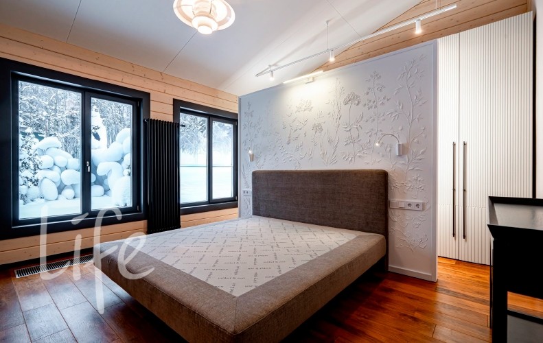 1 этаж: прихожая, холл, гостиная, кухня-столовая, спальня, су, две спальни с су и гардеробными, котельная, обогреваемая пергола.