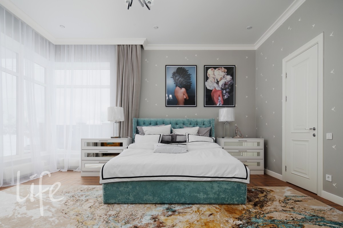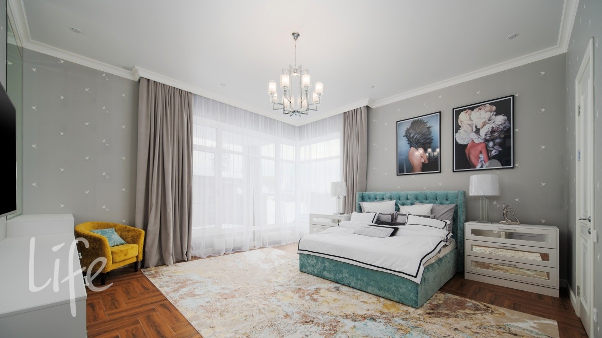1 этаж: гостиная, столовая, спальня с су и гардеробной, кабинет, постирочная, две спальни со своими су, прихожая, мастер-спальня с гардеробной и су, котельная, гостевой су, сауна, кухня, столовая, коридор.