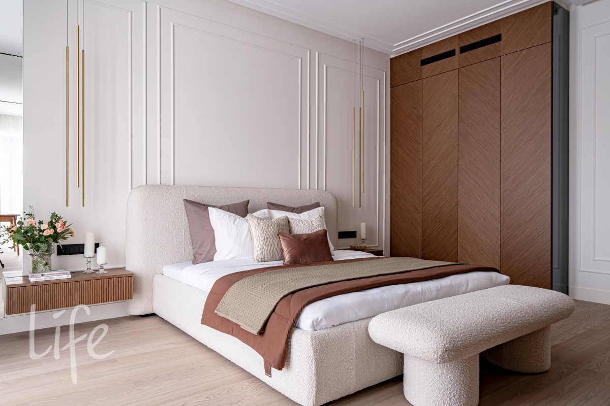 2 этаж: 4 просторные спальни, каждая из которых дополнена индивидуальным санузлом, просторный холл с видом на второй свет гостиной.