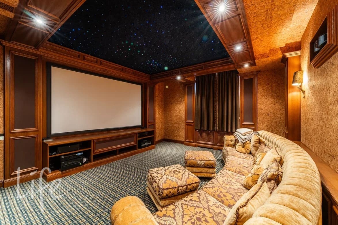 Цоколь: бильярдная, спортзал, комната для тенниса, домашний кинотеатр, оружейная, су, холодильная комната, погреб, мастерская, гардеробная, мини-кухня.