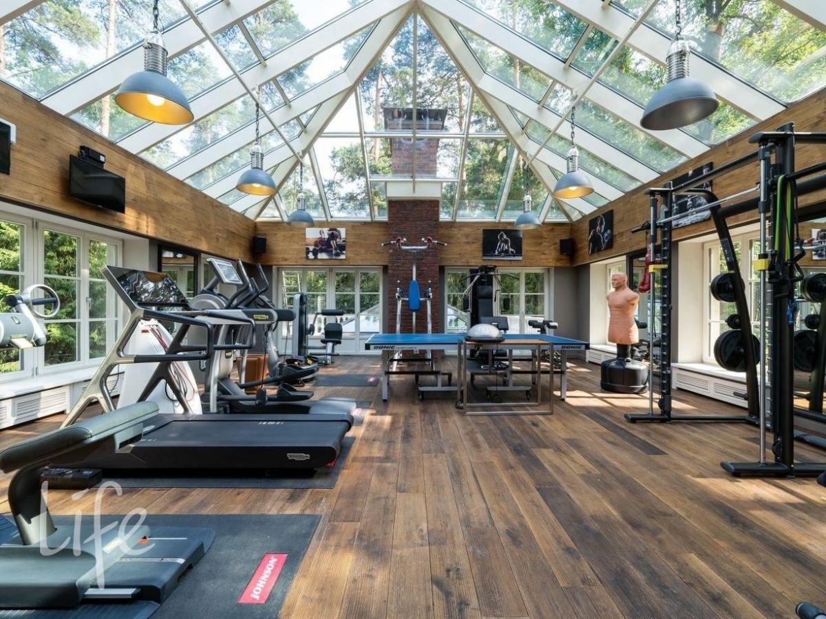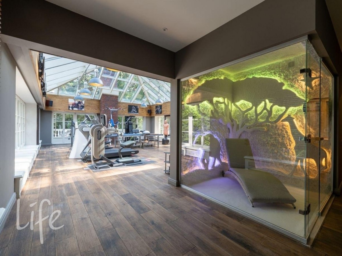 2 этаж: холл, четыре спальни и кабинет, спортзал Technogym с соляной комнатой.