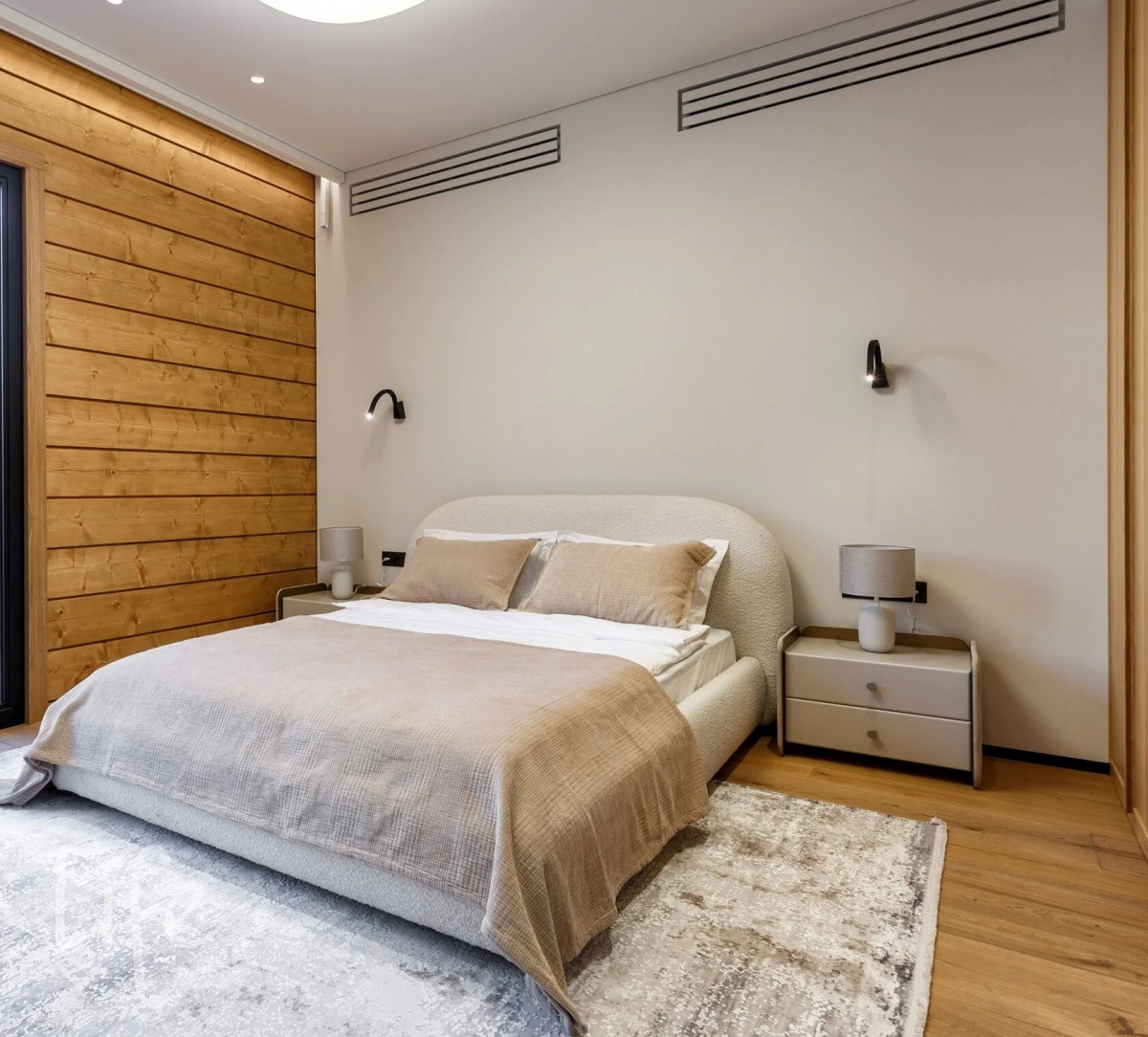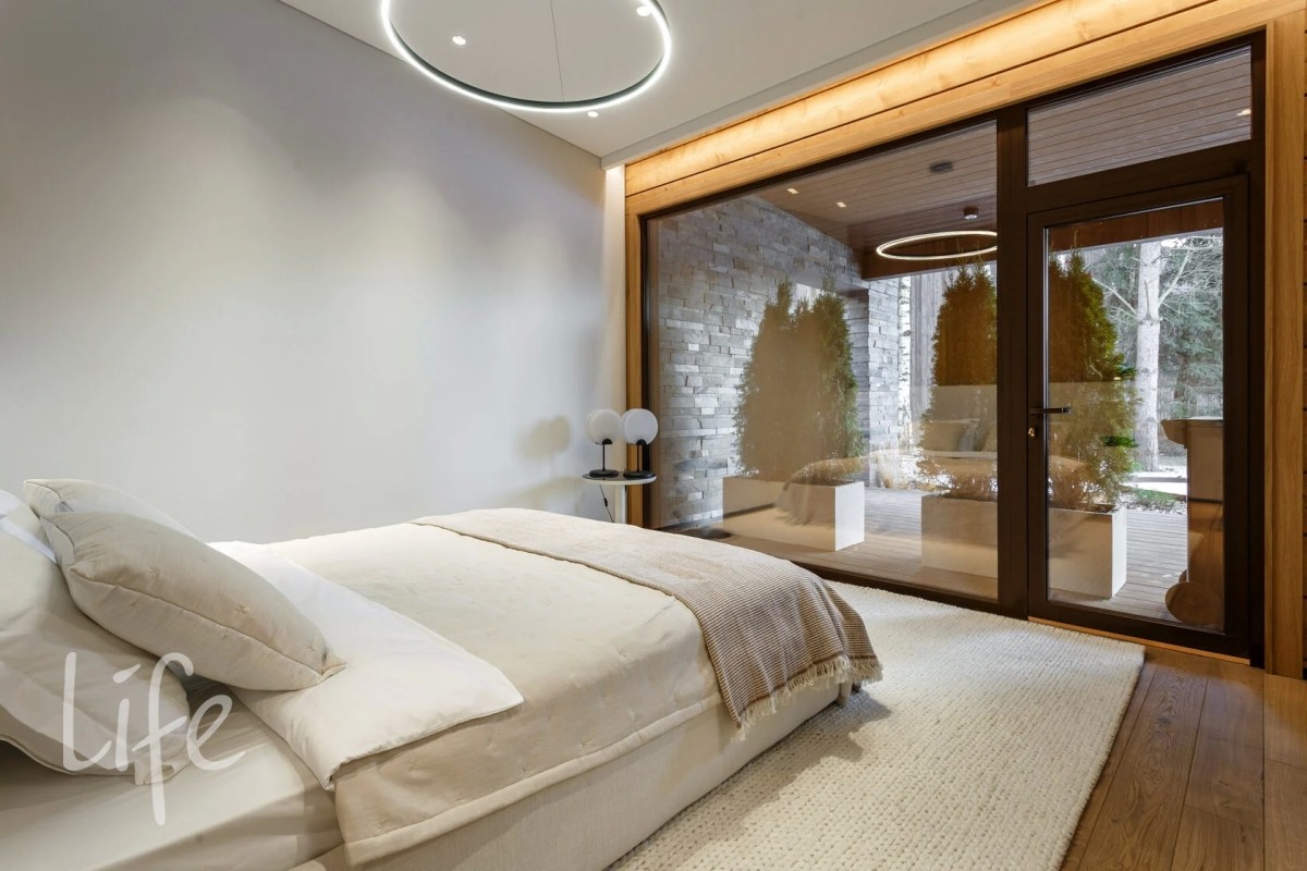— Мастер-спальня с отдельным выходом на террасу, ванной комнатой и гардеробом