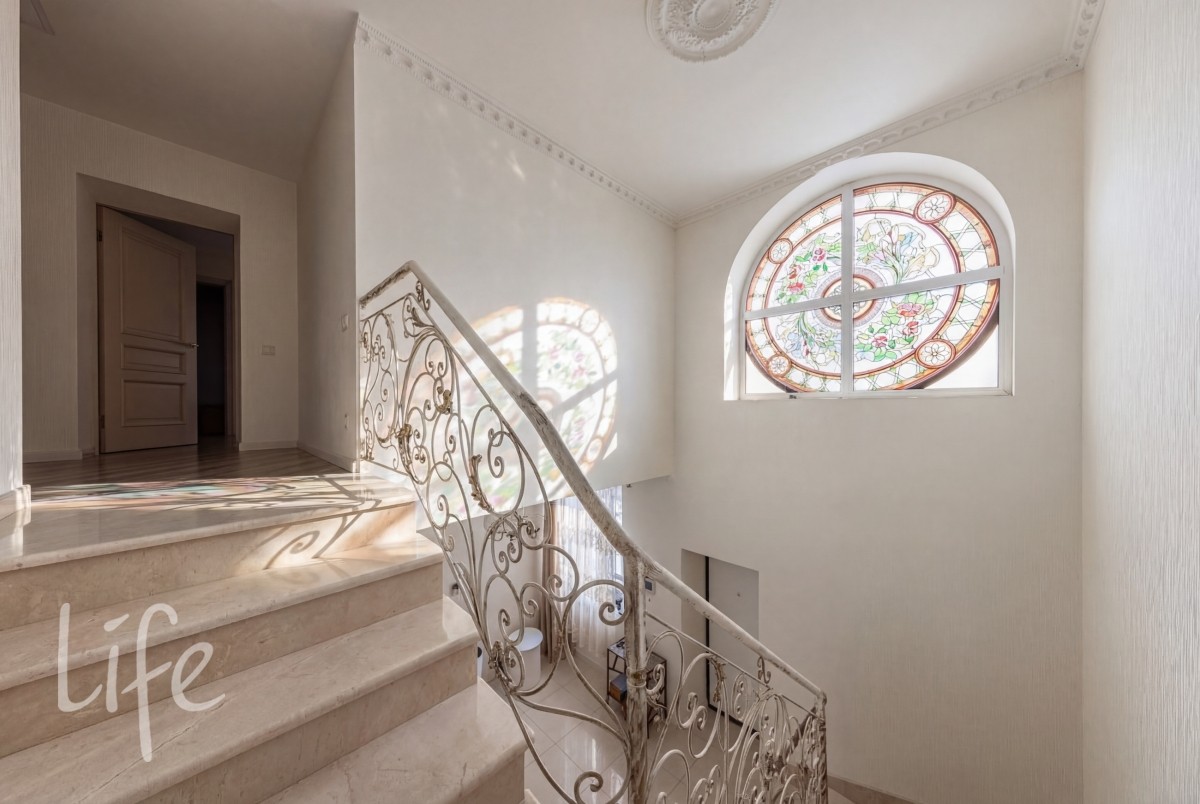 Бронированное остекление, мраморная бетонная лестница. Водоподготовка - можно пить из под крана. Газовой котёл Buderus. Центральные коммуникации: - газ- электричество - вода - канализация - ливнёвка.