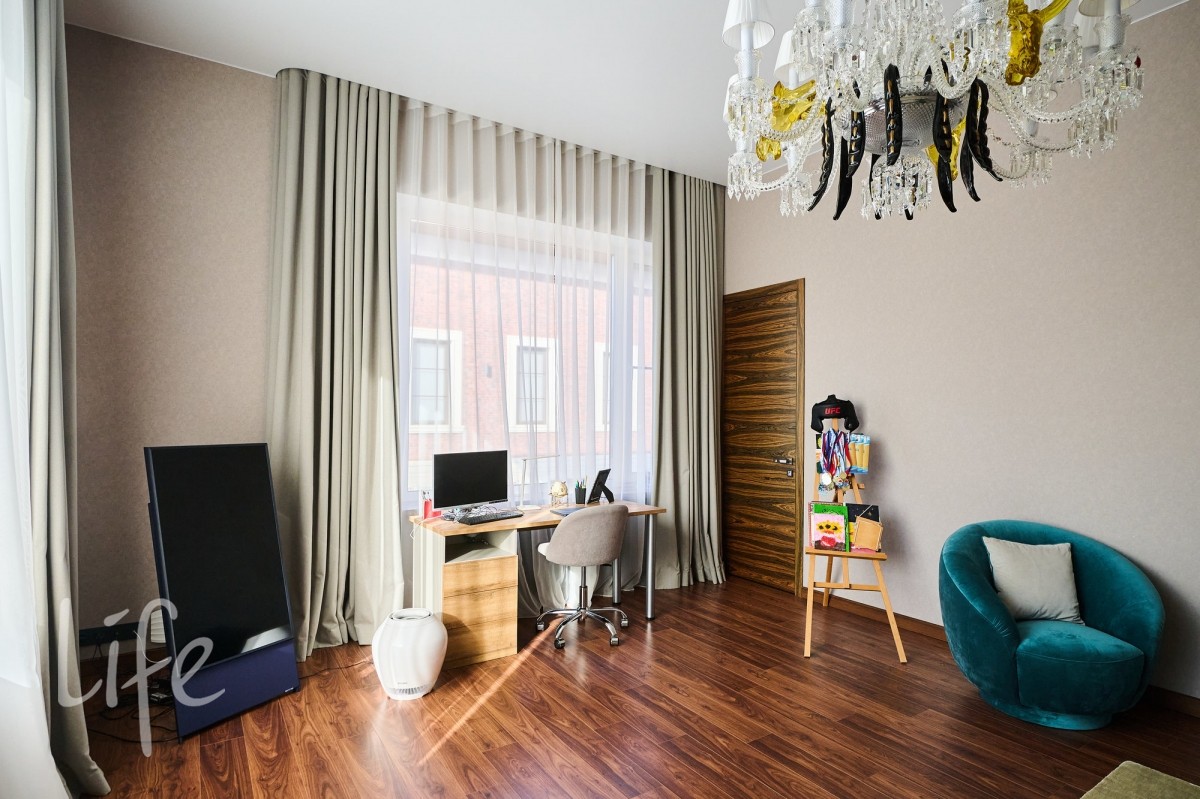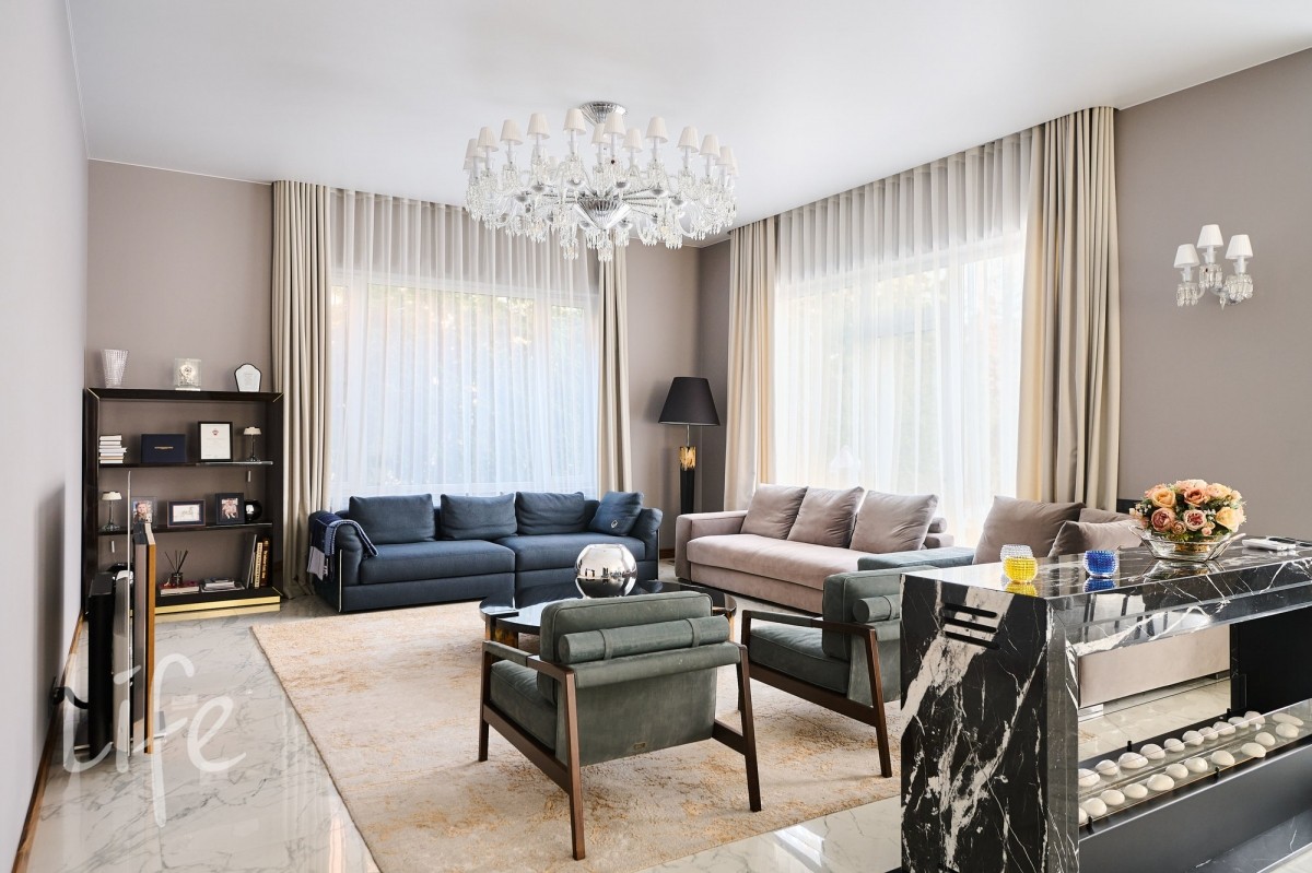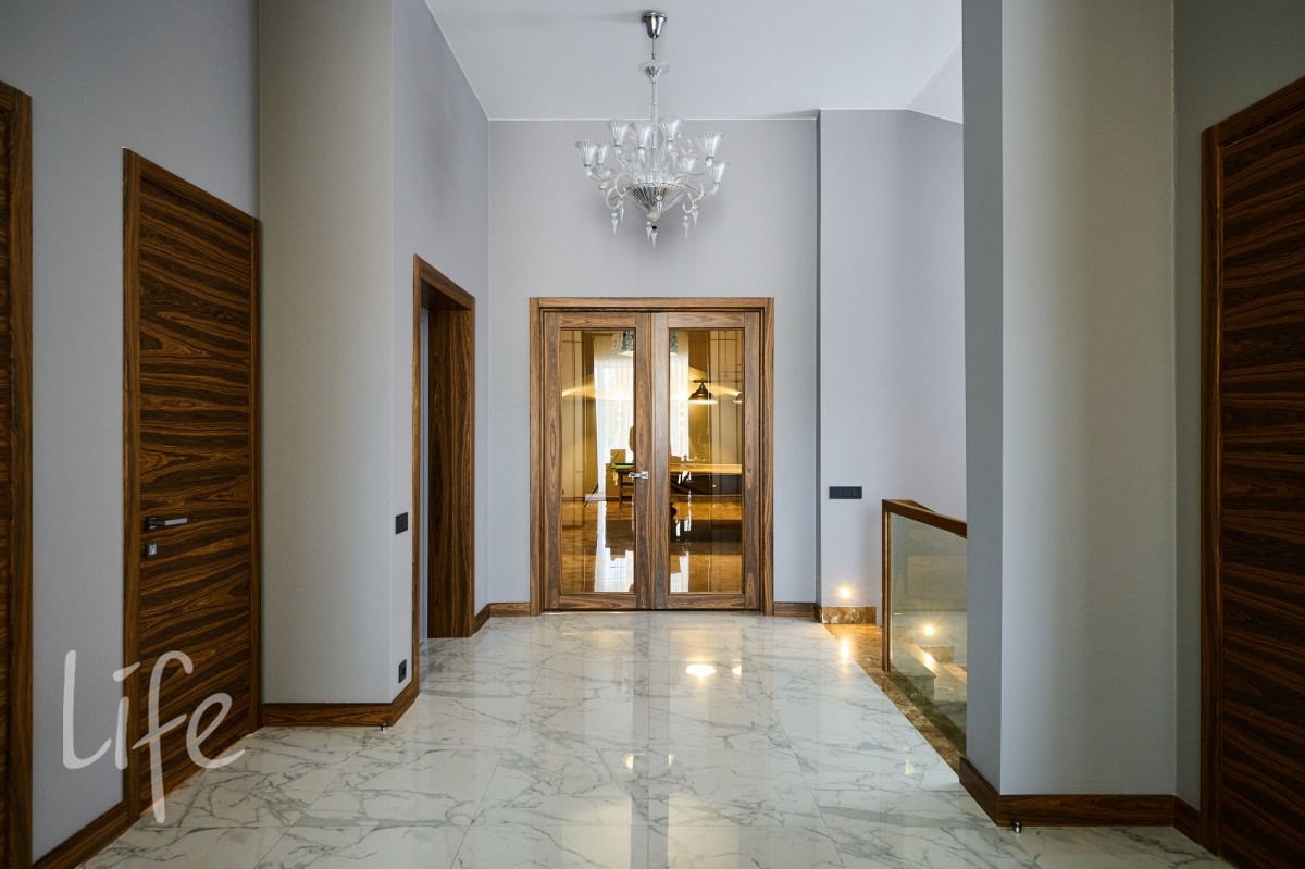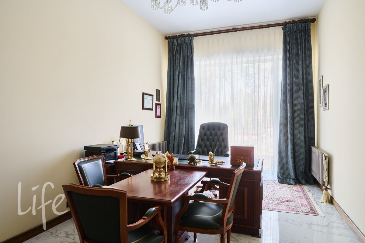 просторный, с высокими потолками. Современный стиль интерьера дополнен дорогой мебелью от известных марок ,что подчеркивает высокий статус владельца. Установлен современный лифт, который соединяет все этажи, предоставляя удобный доступ к каждому помещению. Все коммуникации центральные. Видеонаблюдение на участке и в доме. Эксклюзивный ландшафт участка разработан компанией «Империал Гарден».