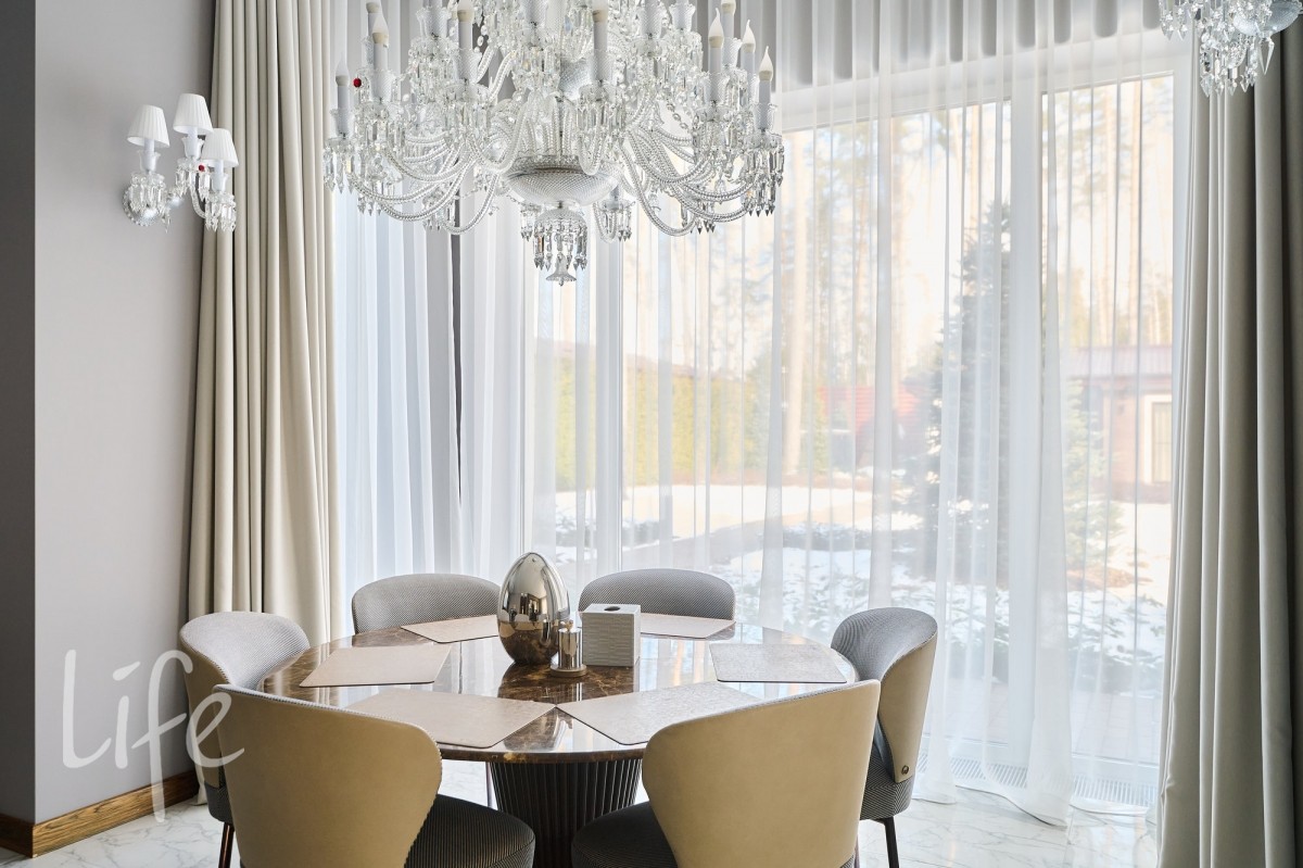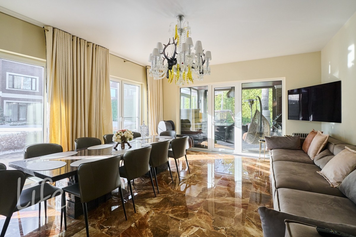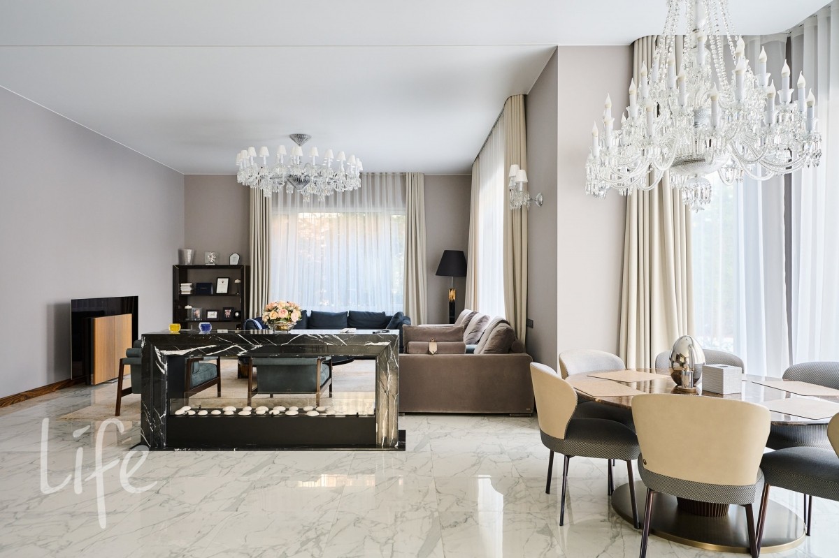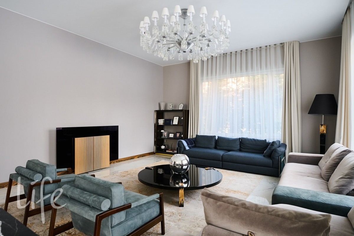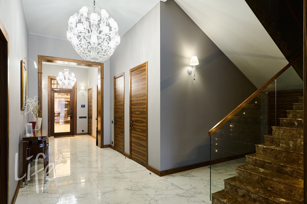 просторный, с высокими потолками. Современный стиль интерьера дополнен дорогой мебелью от известных марок ,что подчеркивает высокий статус владельца. Установлен современный лифт, который соединяет все этажи, предоставляя удобный доступ к каждому помещению. Все коммуникации центральные. Видеонаблюдение на участке и в доме. Эксклюзивный ландшафт участка разработан компанией «Империал Гарден».