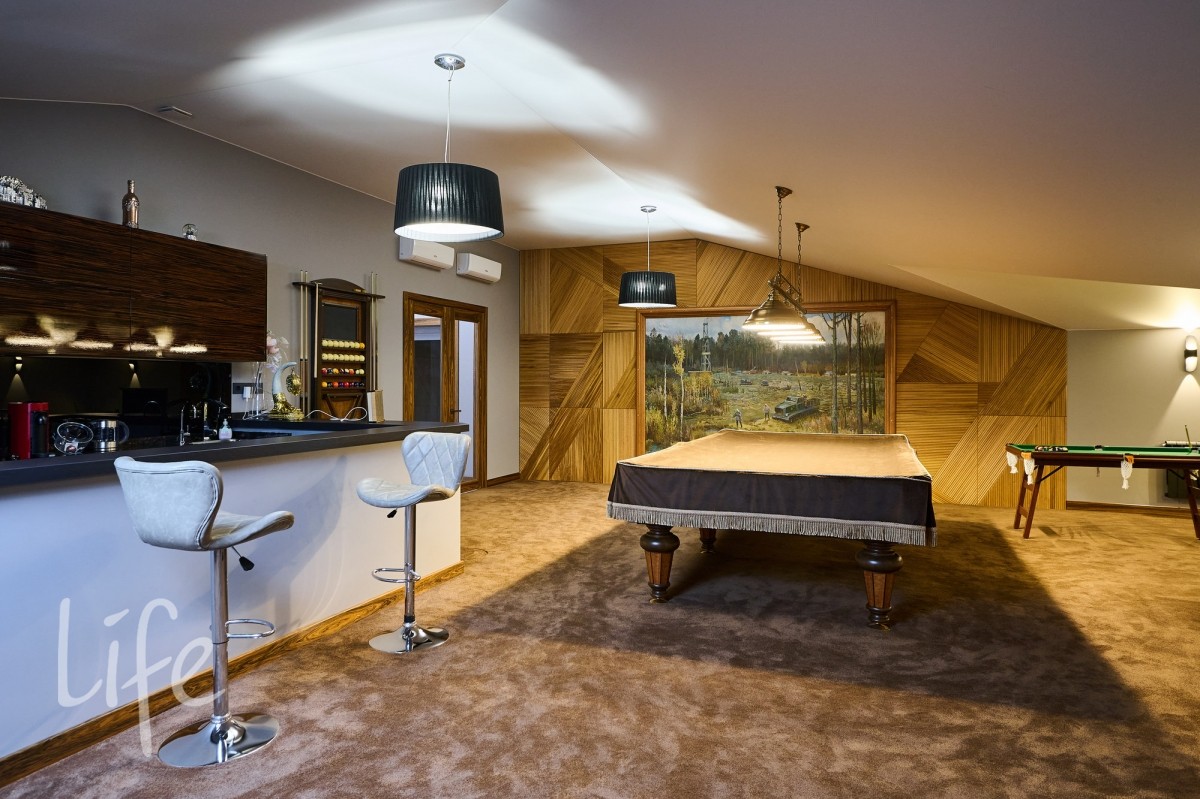 3 этаж: кинотеатр, бильярдная, кабинет, с/у, 2 спальни с с/у.