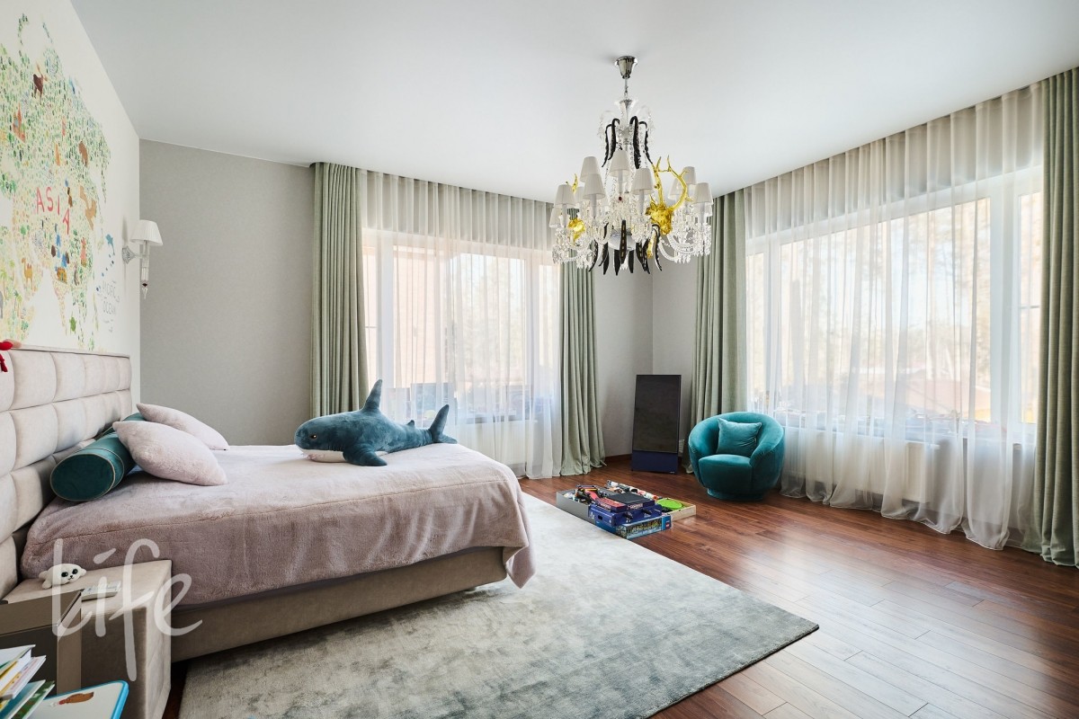 2 этаж: мастер спальня с с/у и гардеробной, 2 спальни с с/у и гардеробными.