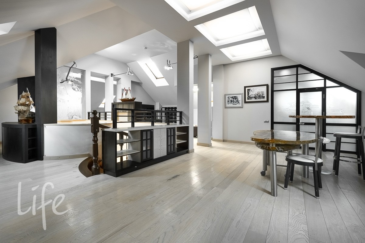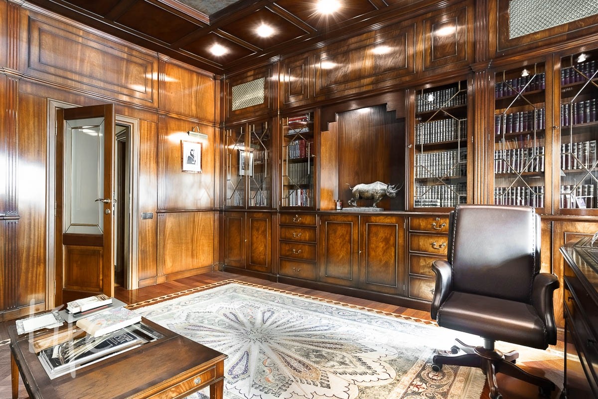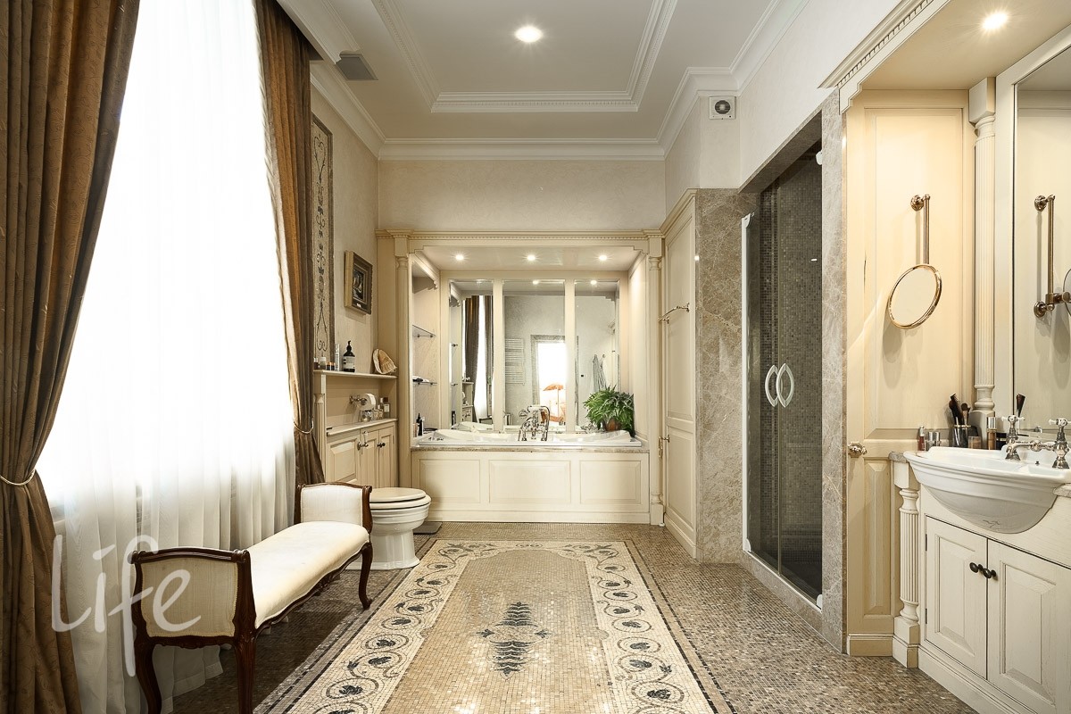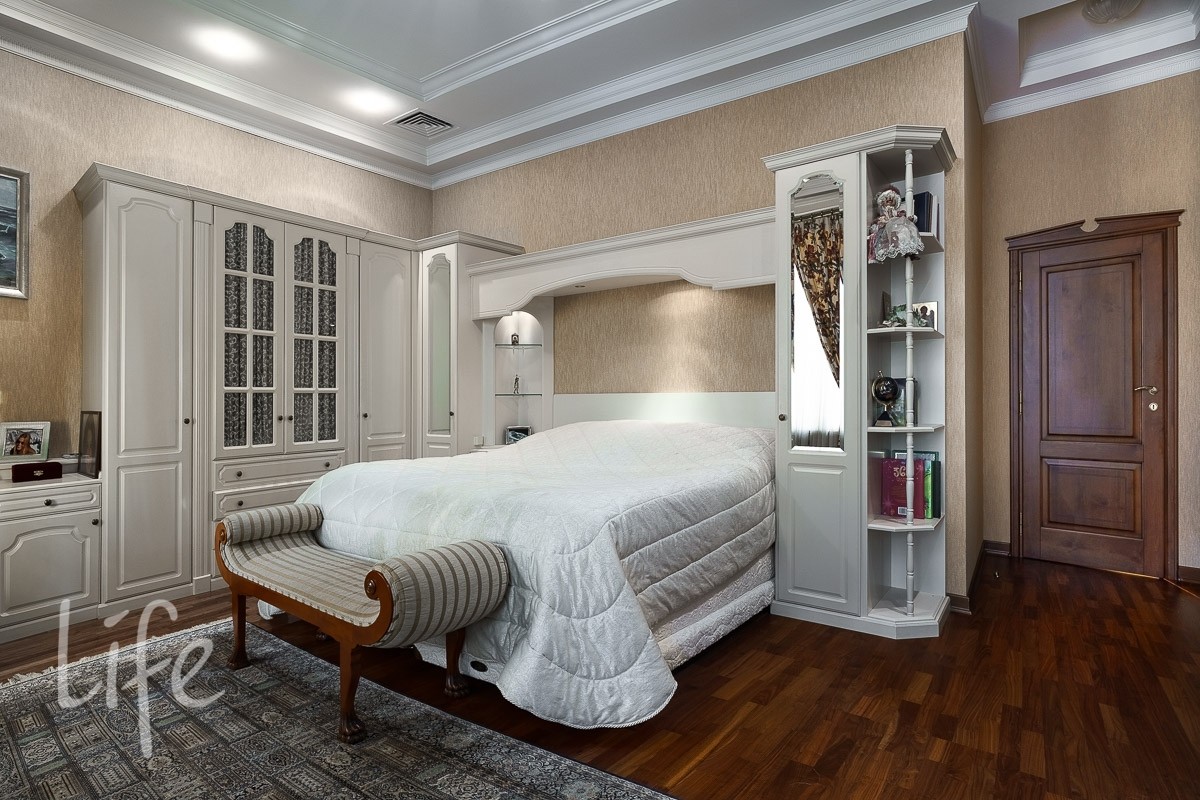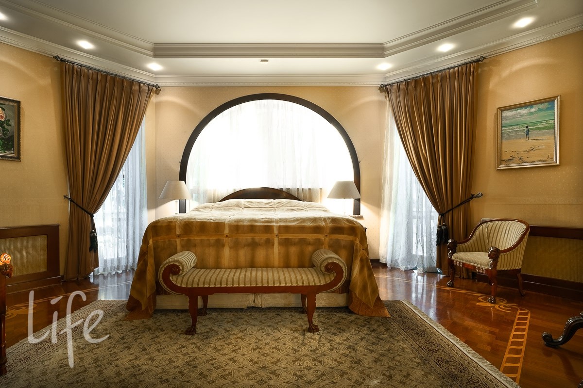 В доме: 4 спальни со своими с/у и гардеробными, гостиная с камином и зоной столовой с выходом на террасу, кухня, кабинет, бильярдная с барной зоной, сигарная, зона отдыха на мансардном этаже, SPA-зона: сауна, купель, душевая.