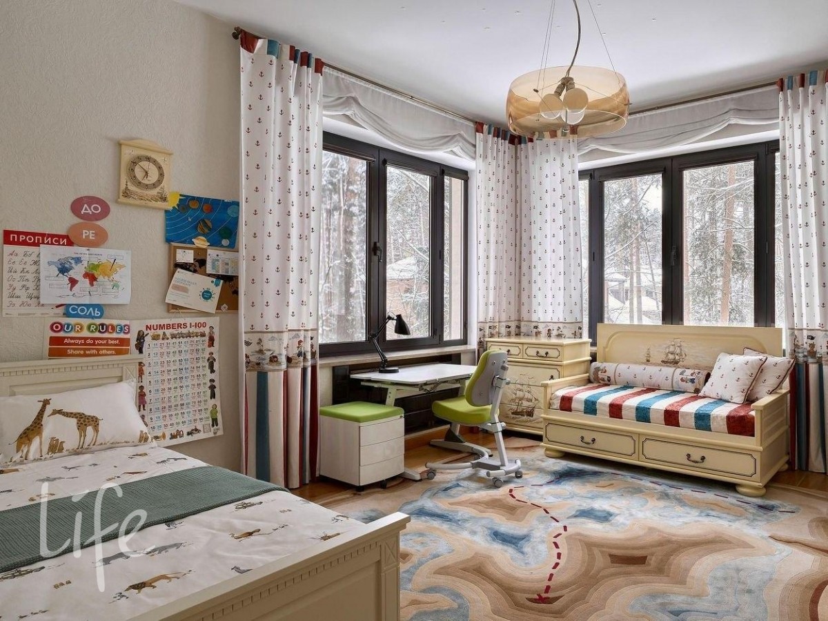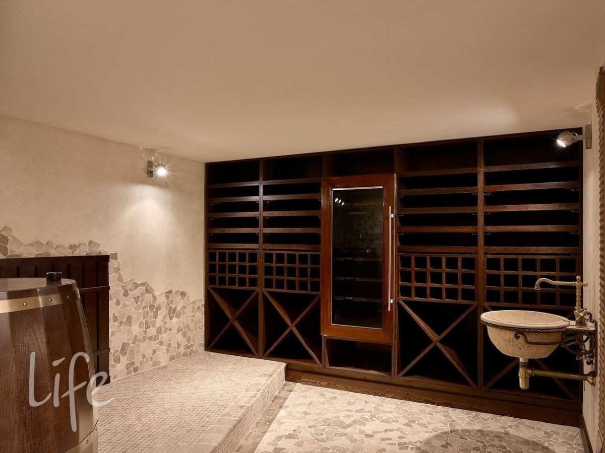 В доме пять спален, гостиная, кухня-столовая с выходом на террасу, кабинет, большие холлы. СПА-зона с бассейном и сауной, комнатой отдыха.