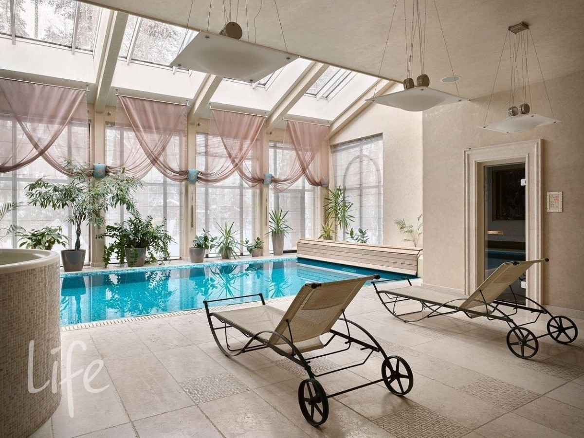 Комфортная планировка с пятью спальнями, гостиной, зоной СПА с бассейном и сауной подойдет для большой семьи.