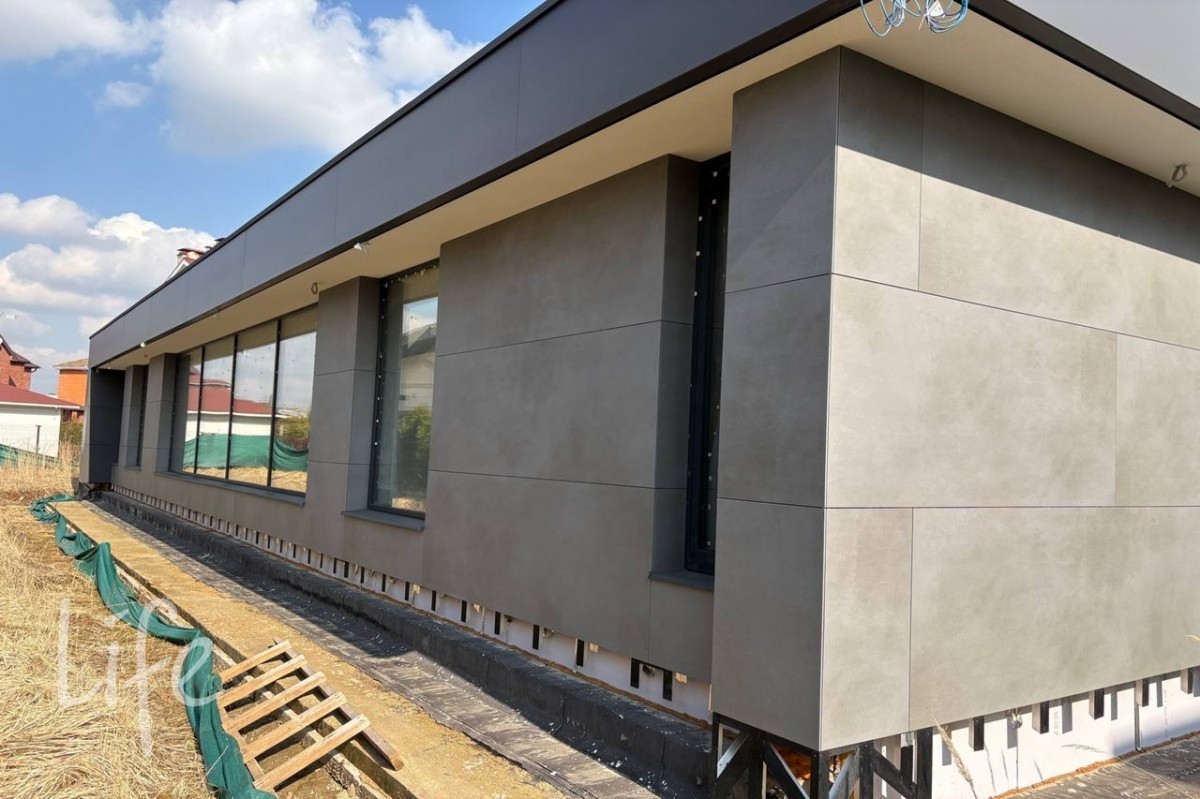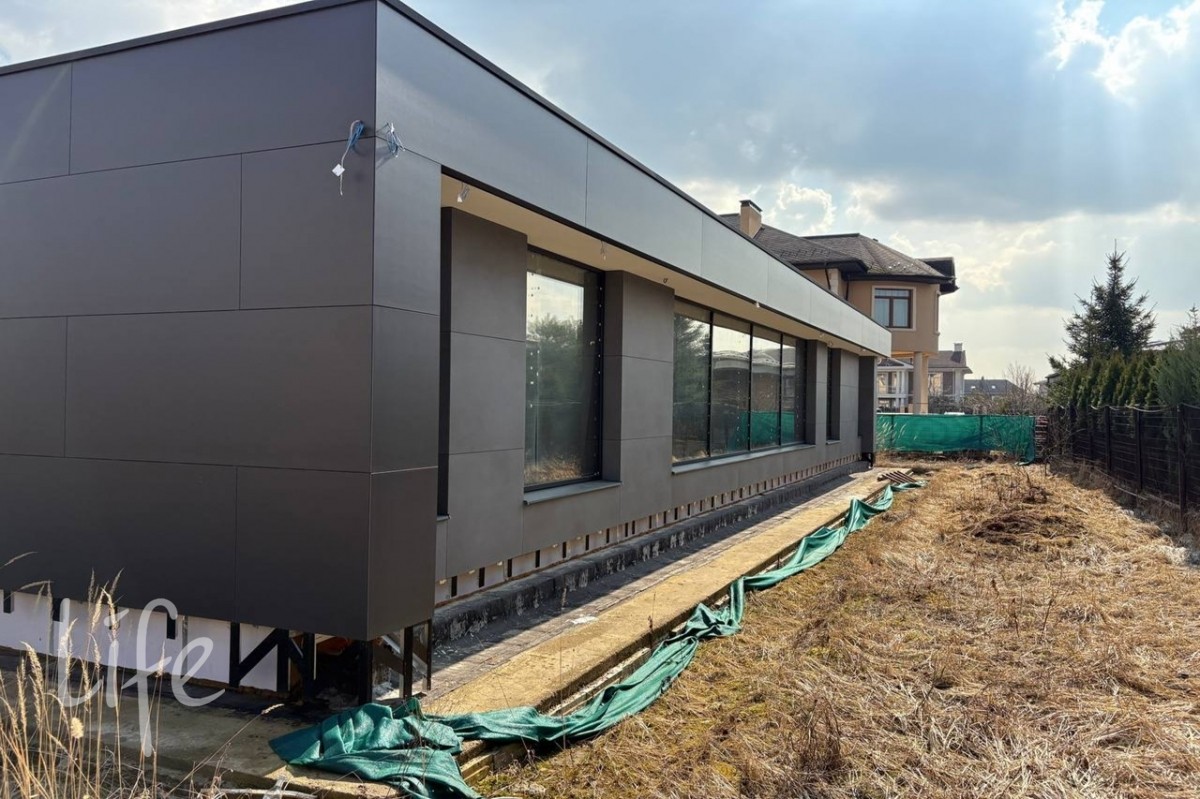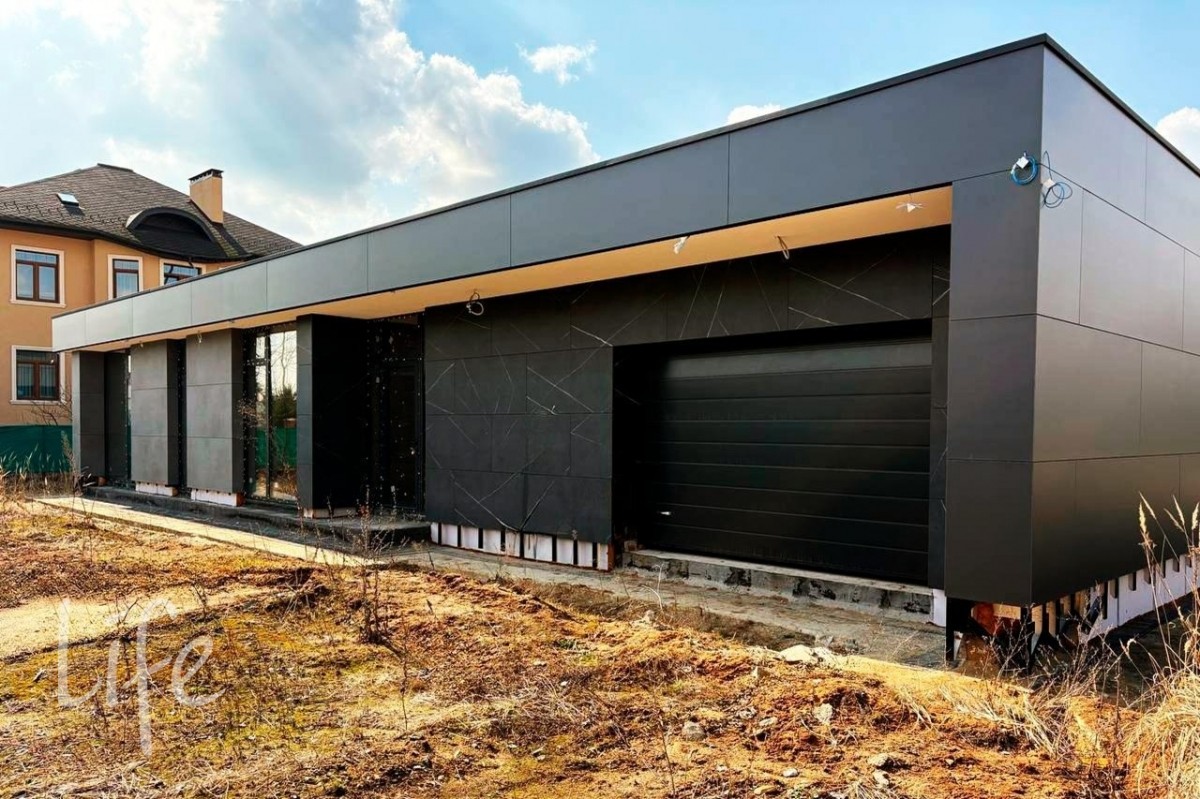 Одноэтажное монолитное здание в современном архитектурном стиле.
