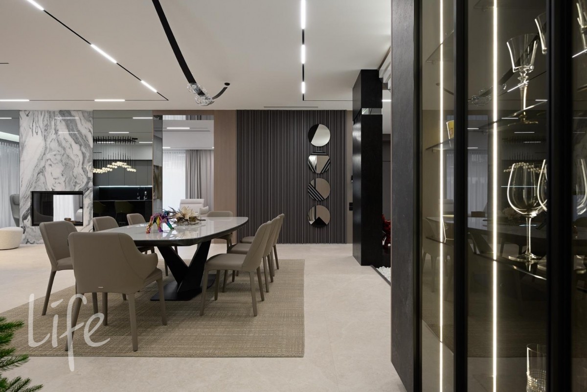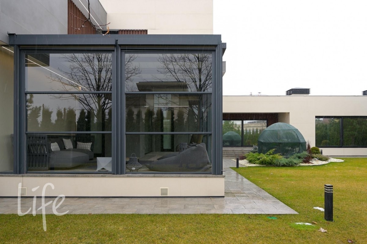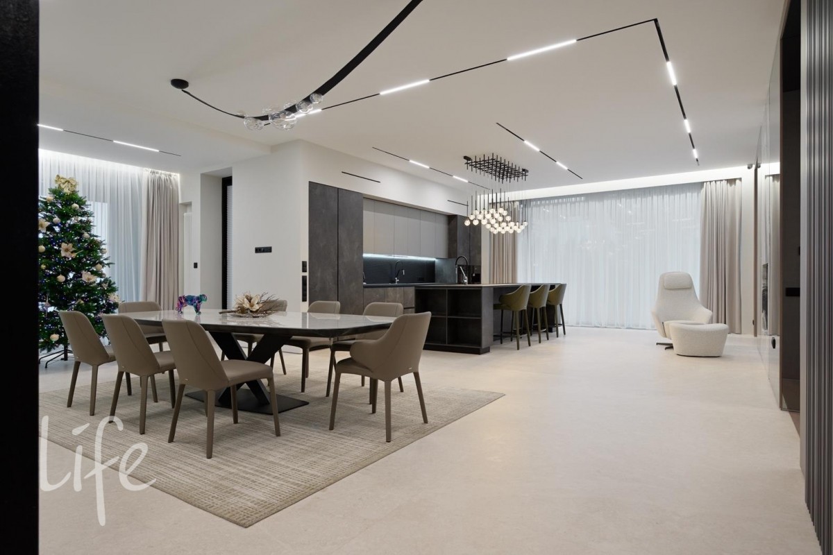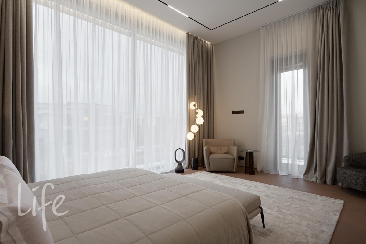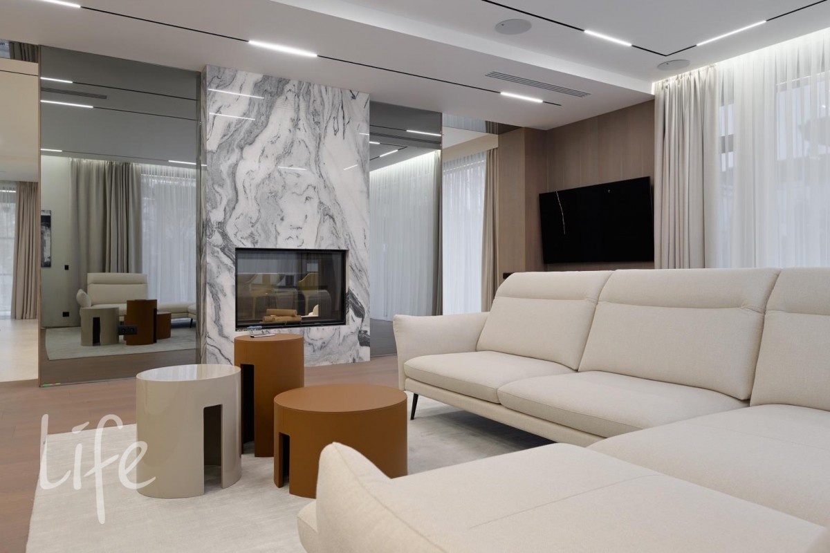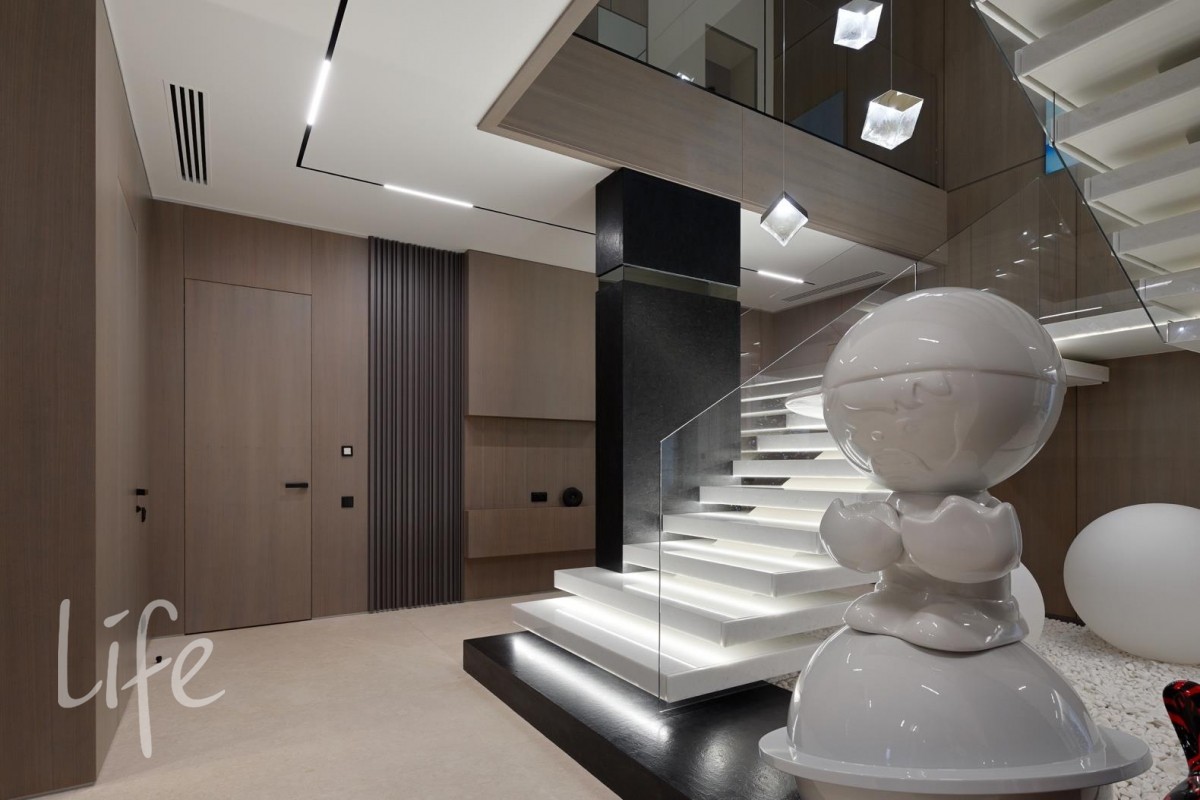 Приточно-вытяжная система вентиляции и кондиционирования Daikin, установлен накопительный блок бесперебойного питания Deye SUN – 12K, бассейн 9*4метра с противотоком, мастер- выключатель света, подогрев пола везде где уложен камень, на полу использована инженерная доска – дуб и мрамор, панели на стенах – камень, дерево, санфаянс - Antonio Lupi, Villeroy and Boch, смесители – Grohe, техника – Miele, Liebherr, Bosch, Smeg, мебель – Poliform, Meridiani, Cattelan, Visionnaire, Smania, Talenti, BandB, Gallotti and Radiede, Shake; свет – Mooi, PaoloCastelli, Sylcom, Cattelan, Baga, кинотеатр – Samsung the Premiere, акустическая система – Bowers and Wilkins, Martin Logan,DLS Flatbox.