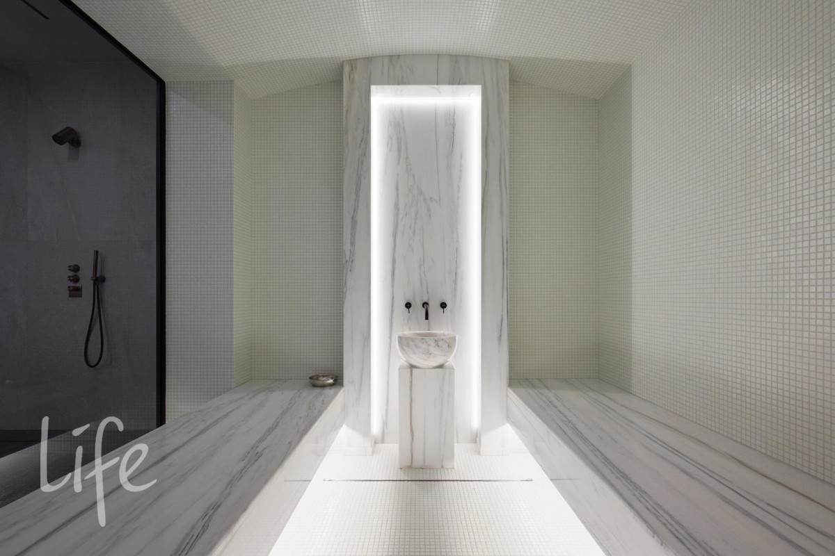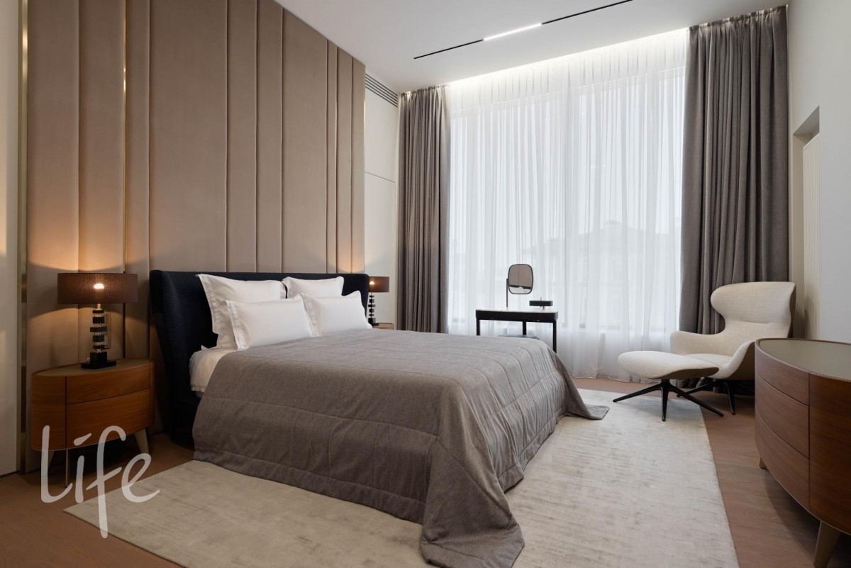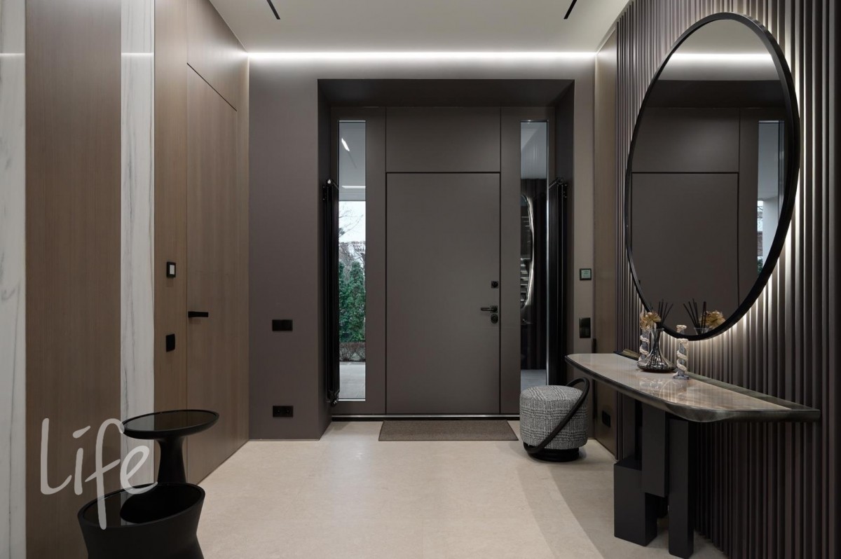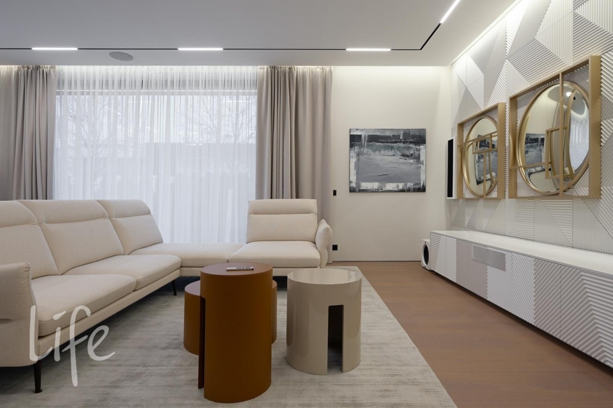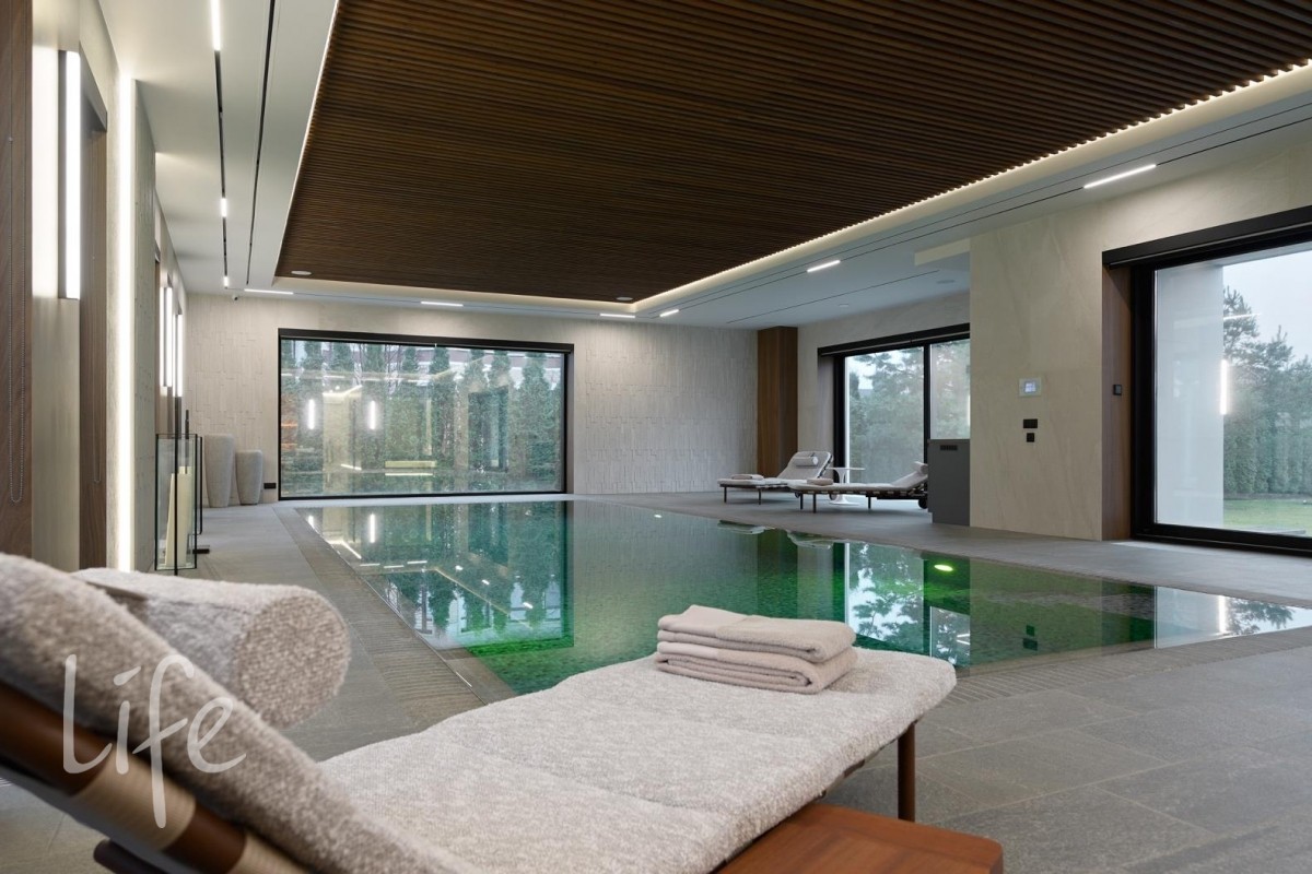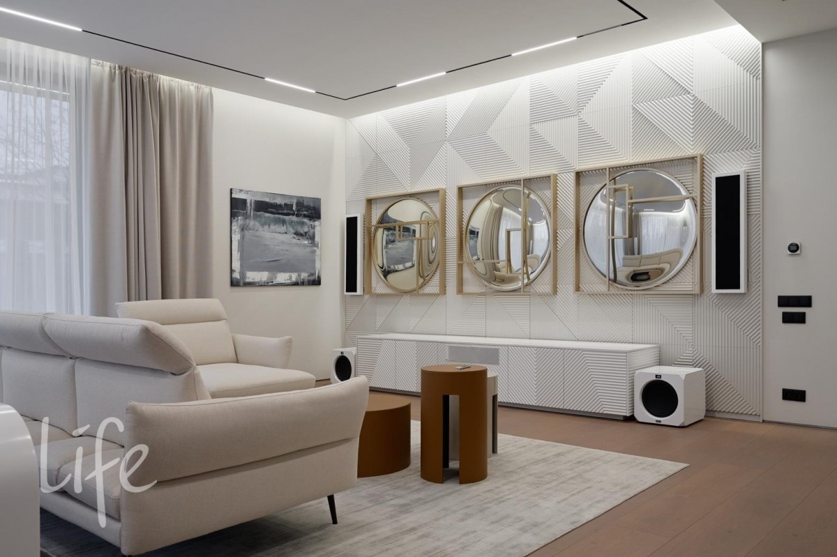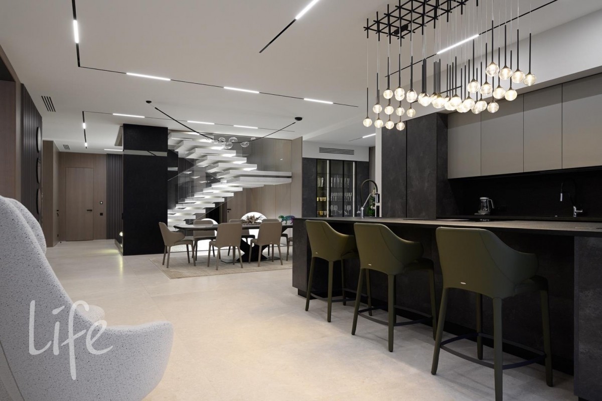 Приточно-вытяжная система вентиляции и кондиционирования Daikin, установлен накопительный блок бесперебойного питания Deye SUN – 12K, бассейн 9*4метра с противотоком, мастер- выключатель света, подогрев пола везде где уложен камень, на полу использована инженерная доска – дуб и мрамор, панели на стенах – камень, дерево, санфаянс - Antonio Lupi, Villeroy and Boch, смесители – Grohe, техника – Miele, Liebherr, Bosch, Smeg, мебель – Poliform, Meridiani, Cattelan, Visionnaire, Smania, Talenti, BandB, Gallotti and Radiede, Shake; свет – Mooi, PaoloCastelli, Sylcom, Cattelan, Baga, кинотеатр – Samsung the Premiere, акустическая система – Bowers and Wilkins, Martin Logan,DLS Flatbox.