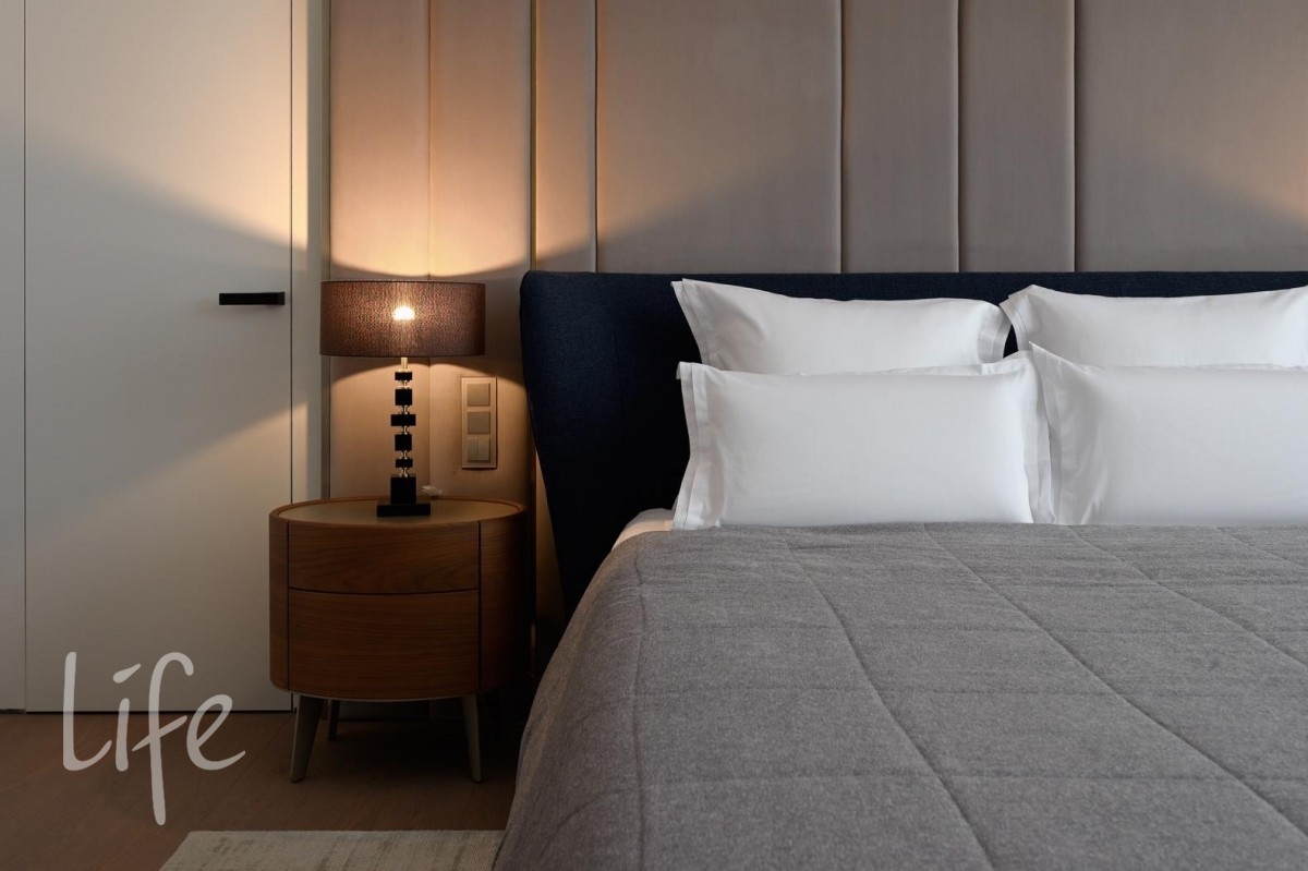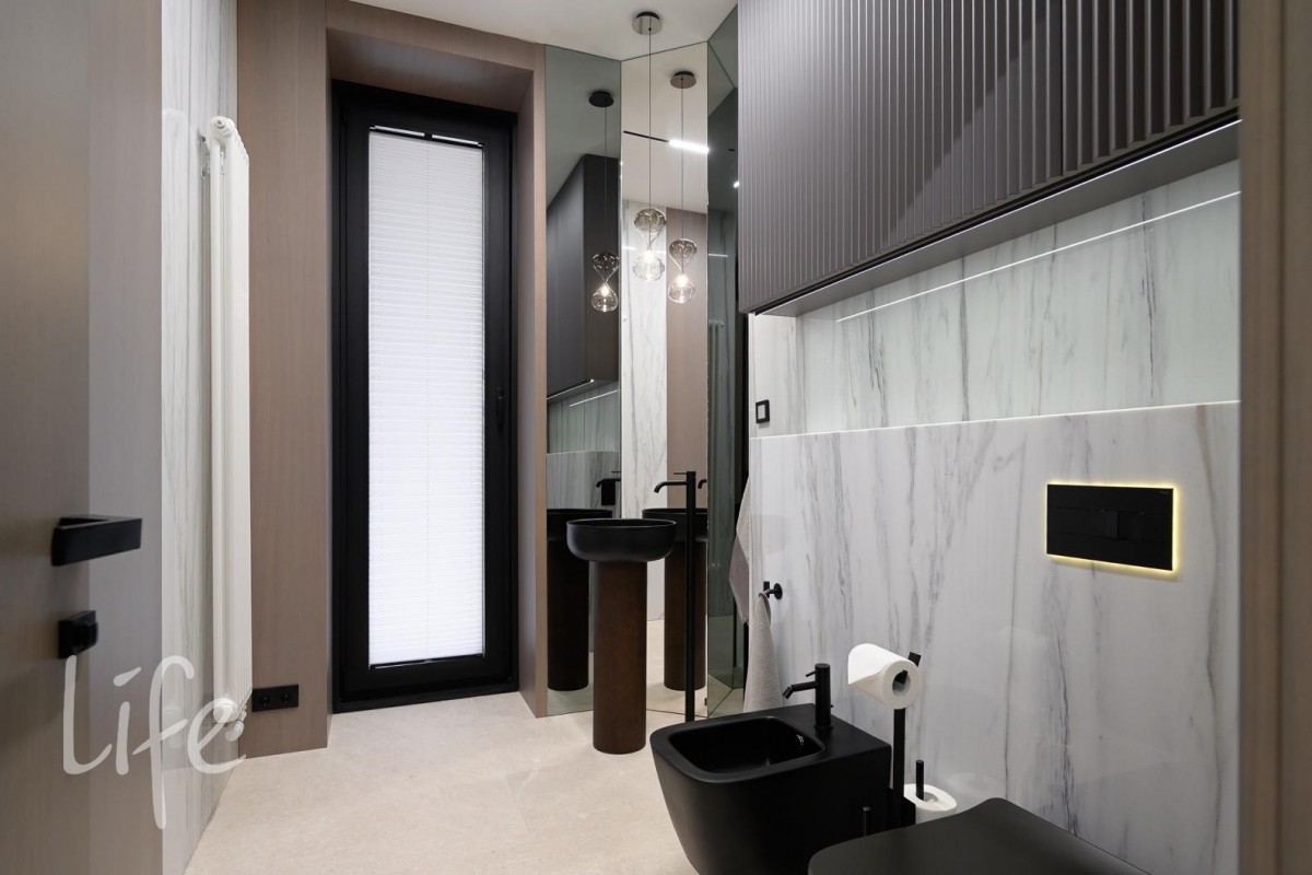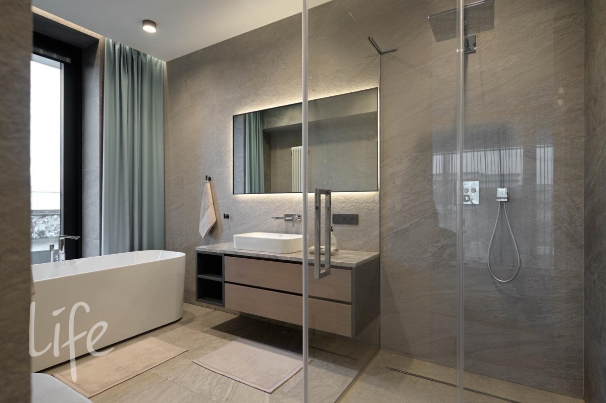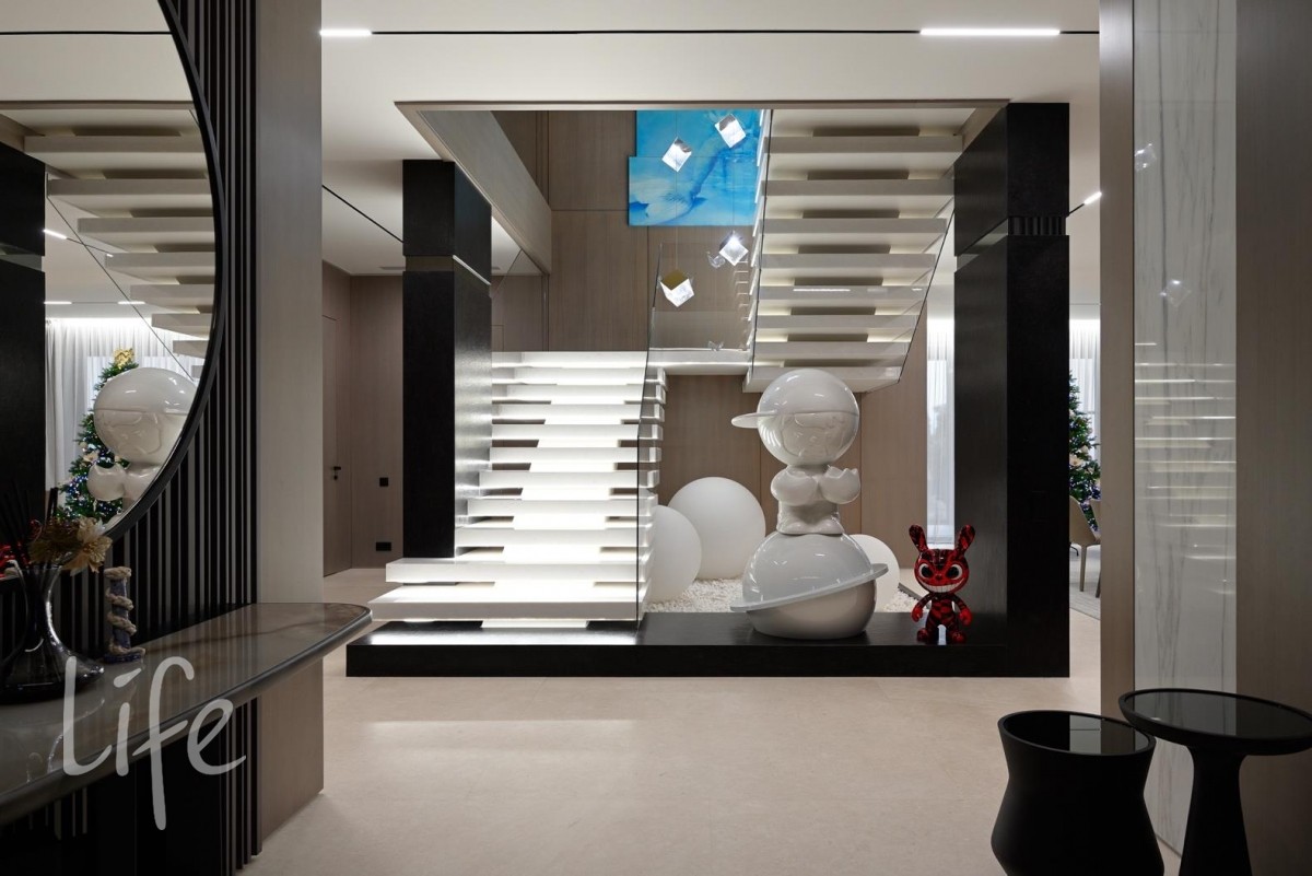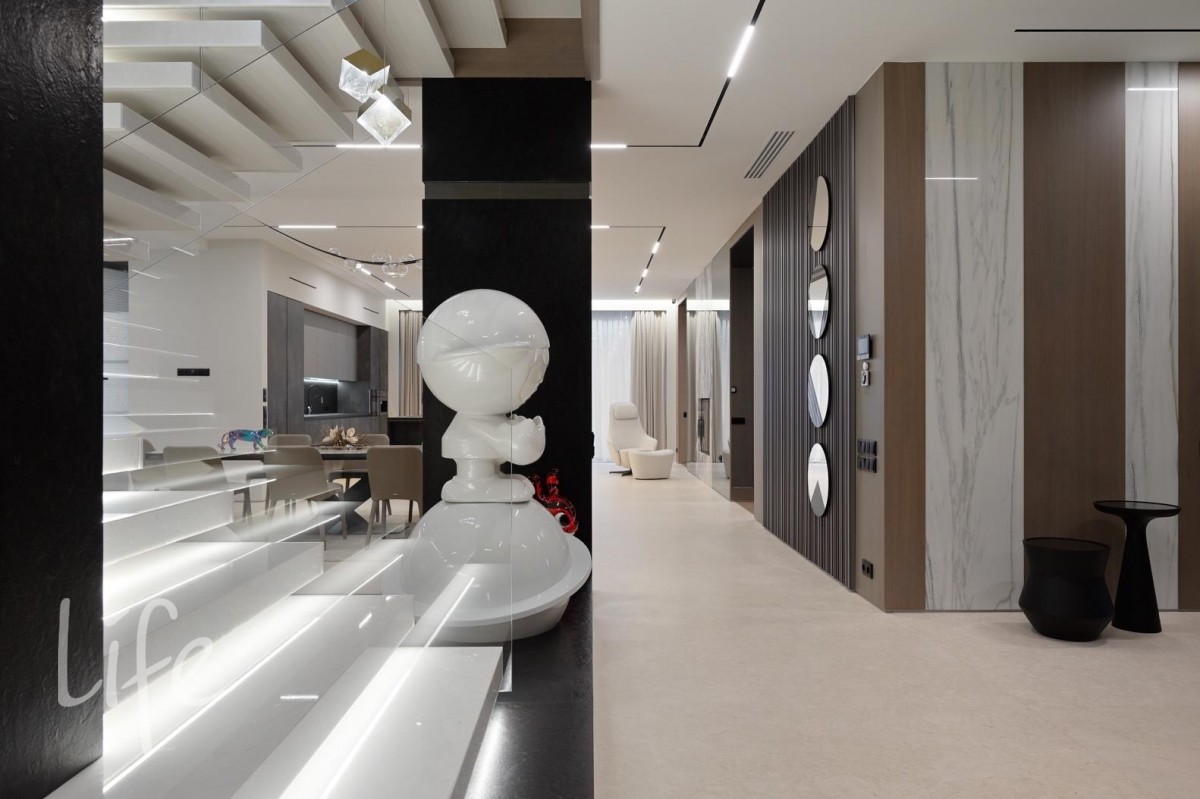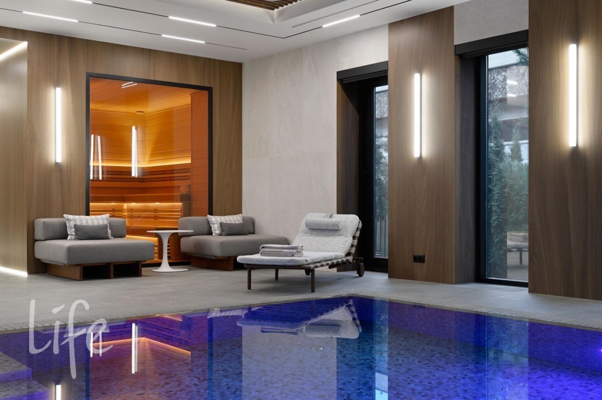 Приточно-вытяжная система вентиляции и кондиционирования Daikin, установлен накопительный блок бесперебойного питания Deye SUN – 12K, бассейн 9*4метра с противотоком, мастер- выключатель света, подогрев пола везде где уложен камень, на полу использована инженерная доска – дуб и мрамор, панели на стенах – камень, дерево, санфаянс - Antonio Lupi, Villeroy and Boch, смесители – Grohe, техника – Miele, Liebherr, Bosch, Smeg, мебель – Poliform, Meridiani, Cattelan, Visionnaire, Smania, Talenti, BandB, Gallotti and Radiede, Shake; свет – Mooi, PaoloCastelli, Sylcom, Cattelan, Baga, кинотеатр – Samsung the Premiere, акустическая система – Bowers and Wilkins, Martin Logan,DLS Flatbox.