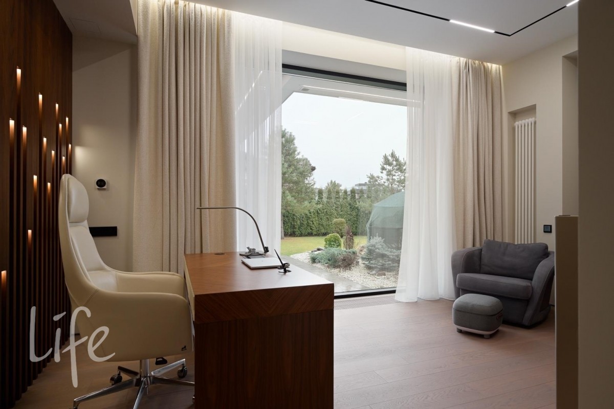 1 этаж: холл, гардеробная комната для верхней одежды, гостевая туалетная комната, кухня - столовая, гостиная с дровяным камином и выходом на оборудованную террасу, кабинет, роскошный СПА комплекс с бассейном, панорамным остеклением и видом на благоустроенный участок, финская и турецкая сауна, массажный кабинет, постирочная комната.