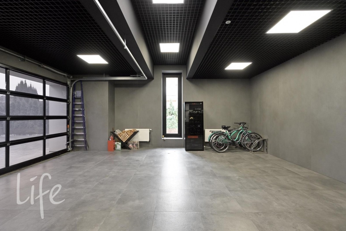 Гараж на два автомобиля и площадка на четыре автомобиля. На территории участка высажены – 2 кедра, 2 клёна, 9 лип, 7 сосен, 172 туи, бансай, спиреи, можжевеловые кустарники.
